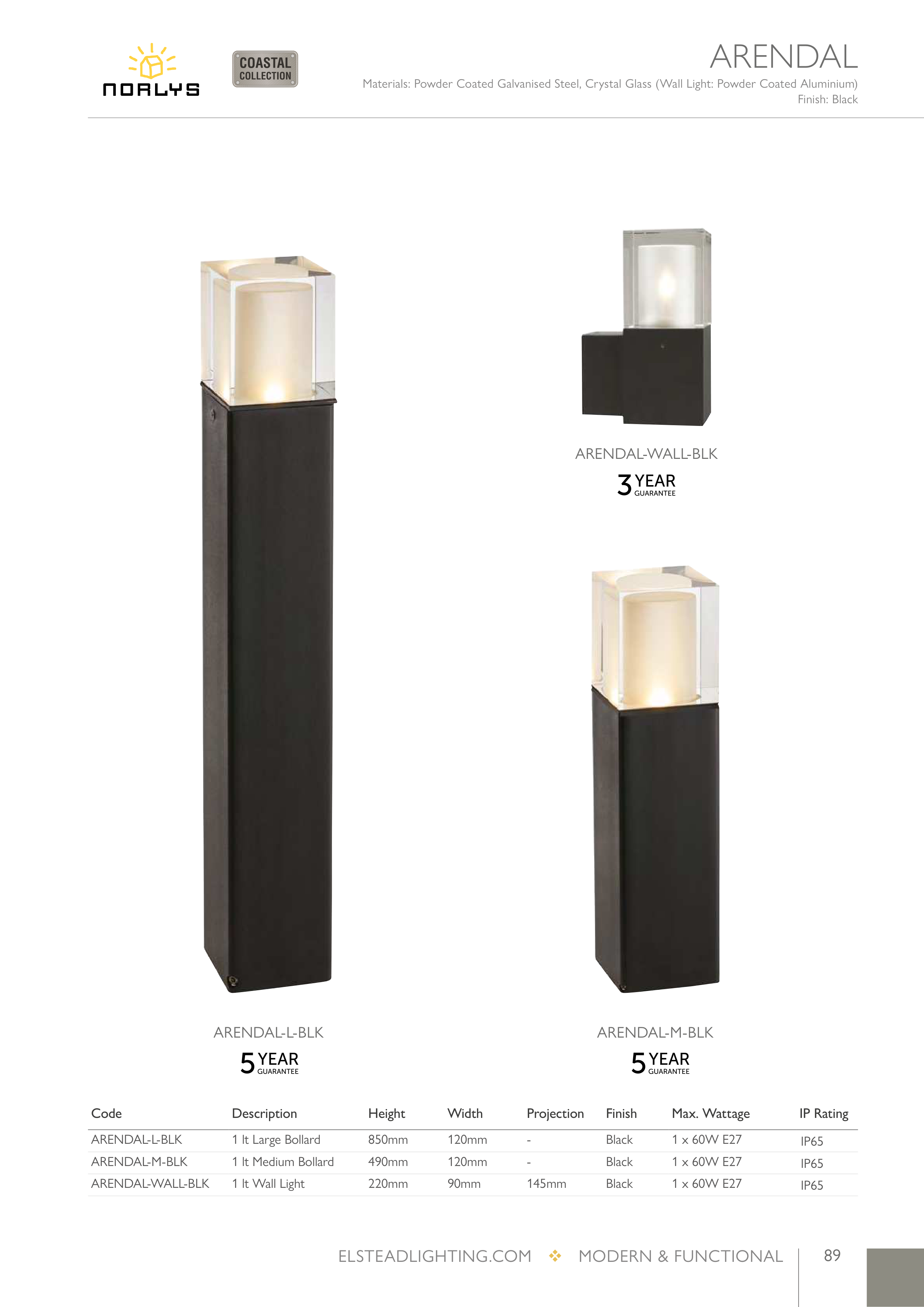 Materials: Powder Coated Galvanised Steel, Crystal Glass (Wall Light: Powder Coated Aluminium)