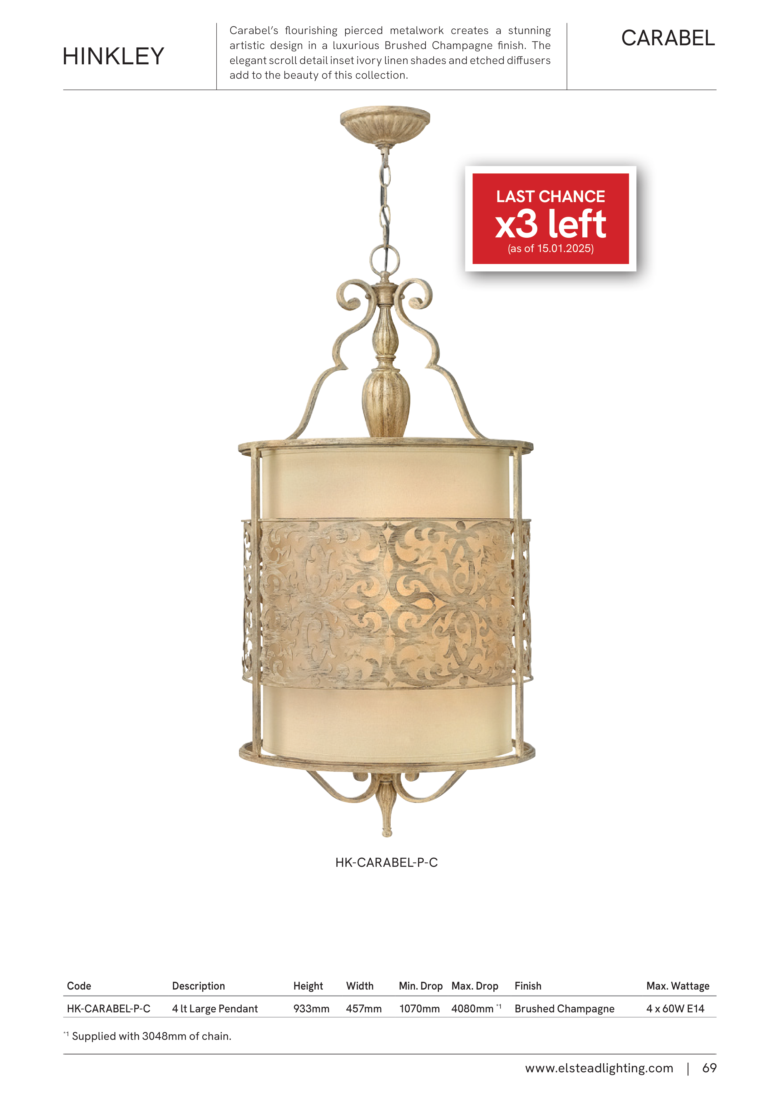 Carabel’s flourishing pierced metalwork creates a stunning