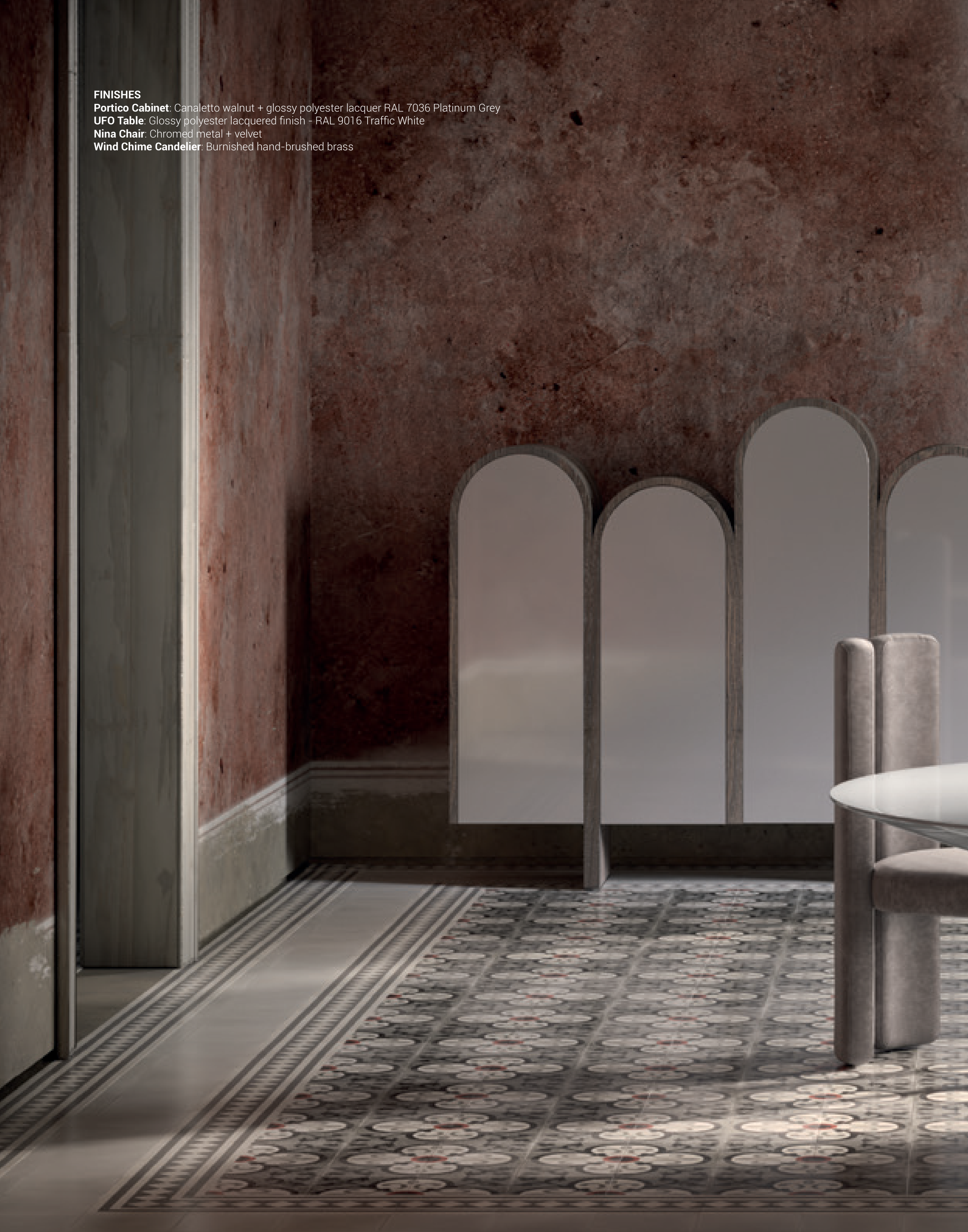Portico Cabinet: Canaletto walnut + glossy polyester lacquer RAL 7036 Platinum Grey