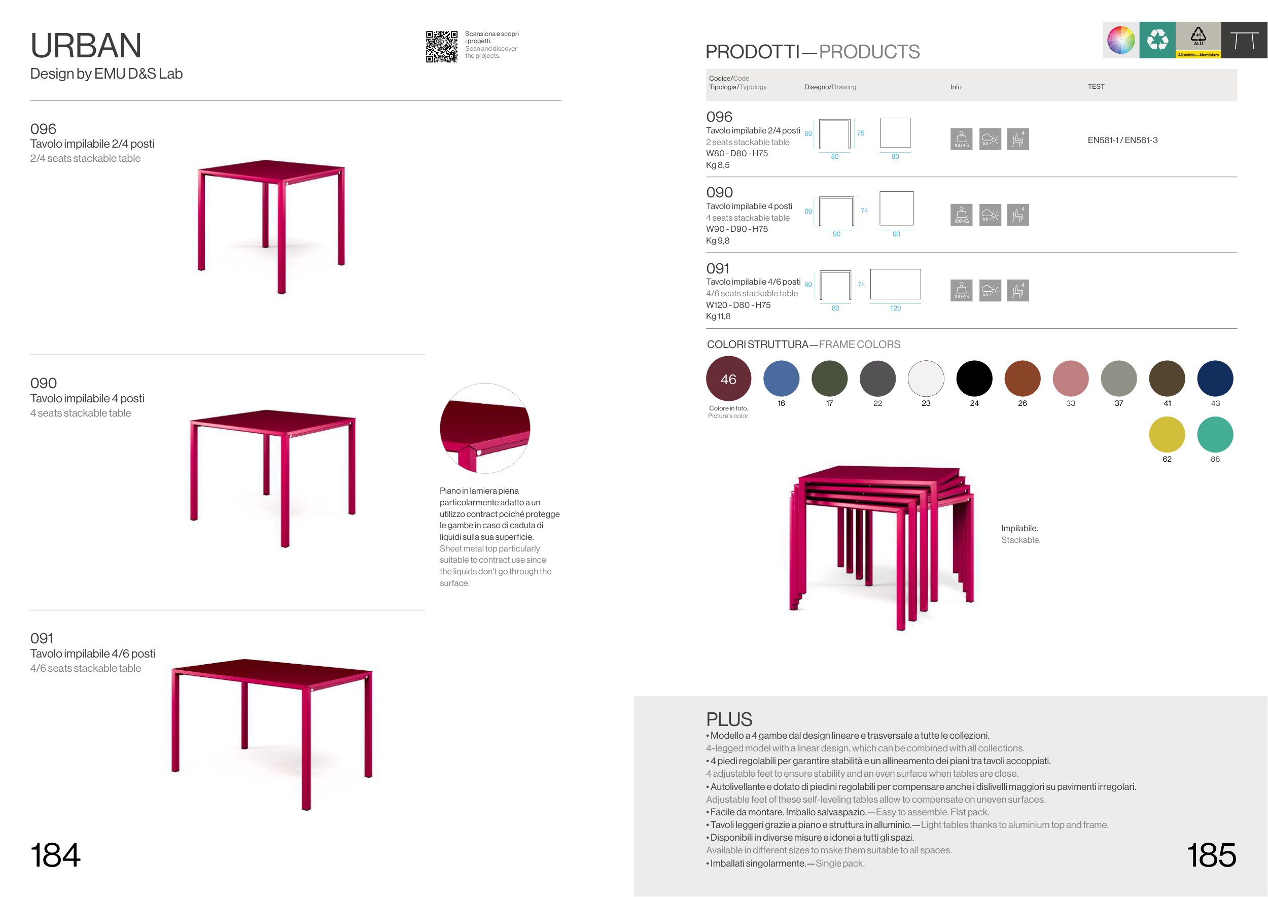 • Tavoli leggeri grazie a piano e struttura in alluminio.—Light tables thanks to aluminium top and frame.