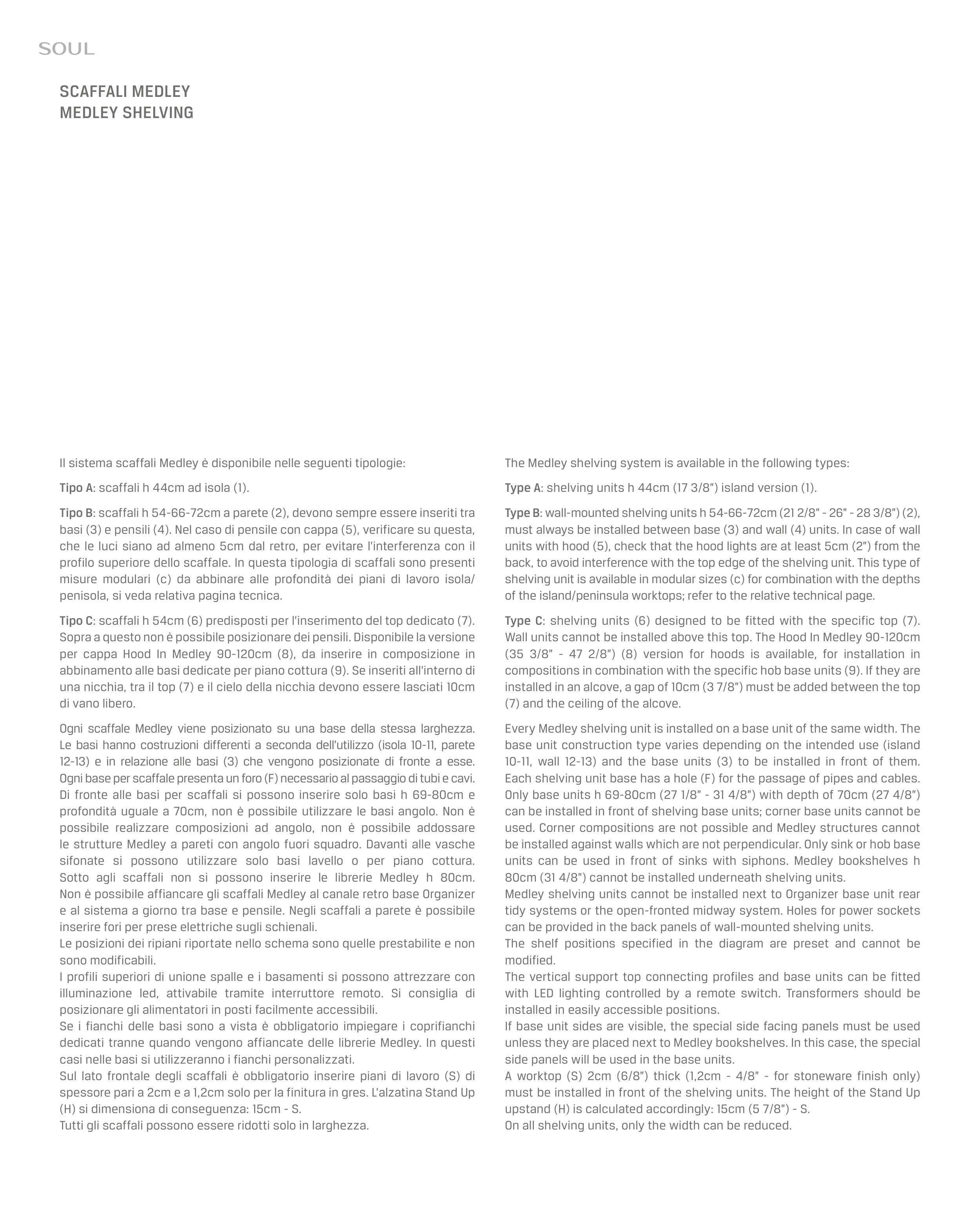 Type B: wall-mounted shelving units h 54-66-72cm (21 2/8” - 26” - 28 3/8”) (2),