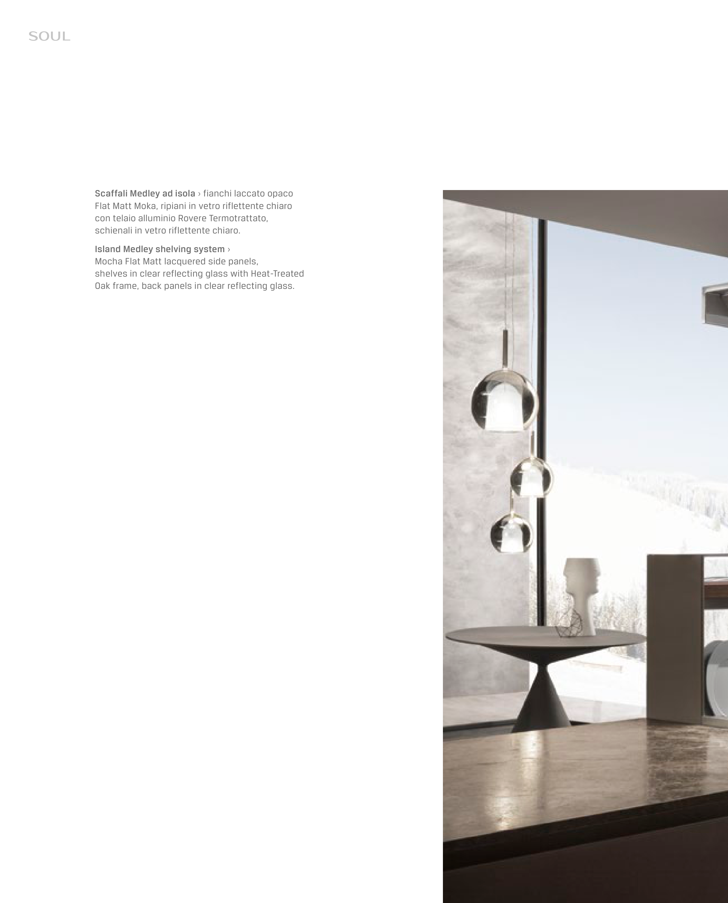 Flat Matt Moka, ripiani in vetro riflettente chiaro