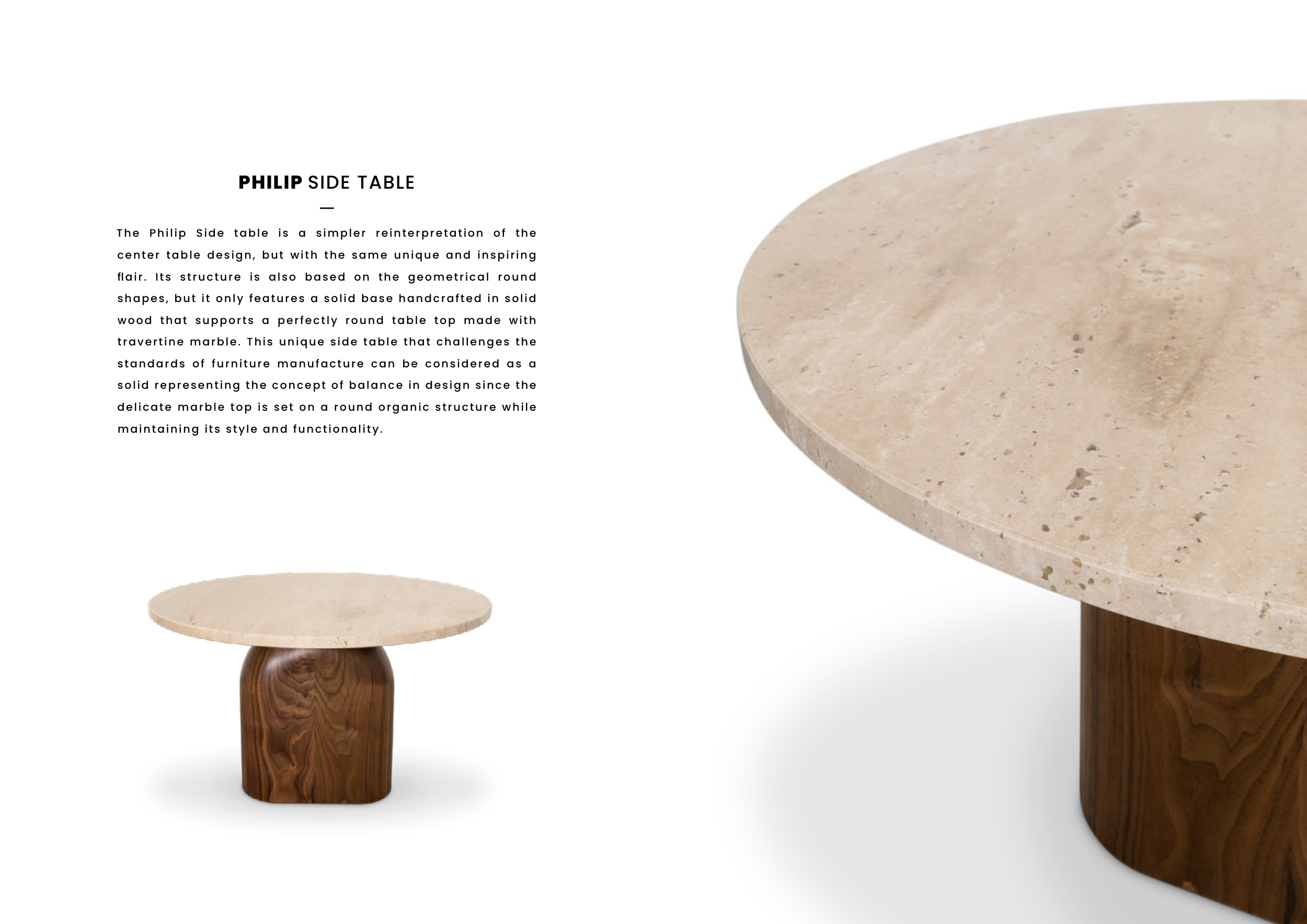 travertine marble. This unique side table that challenges the