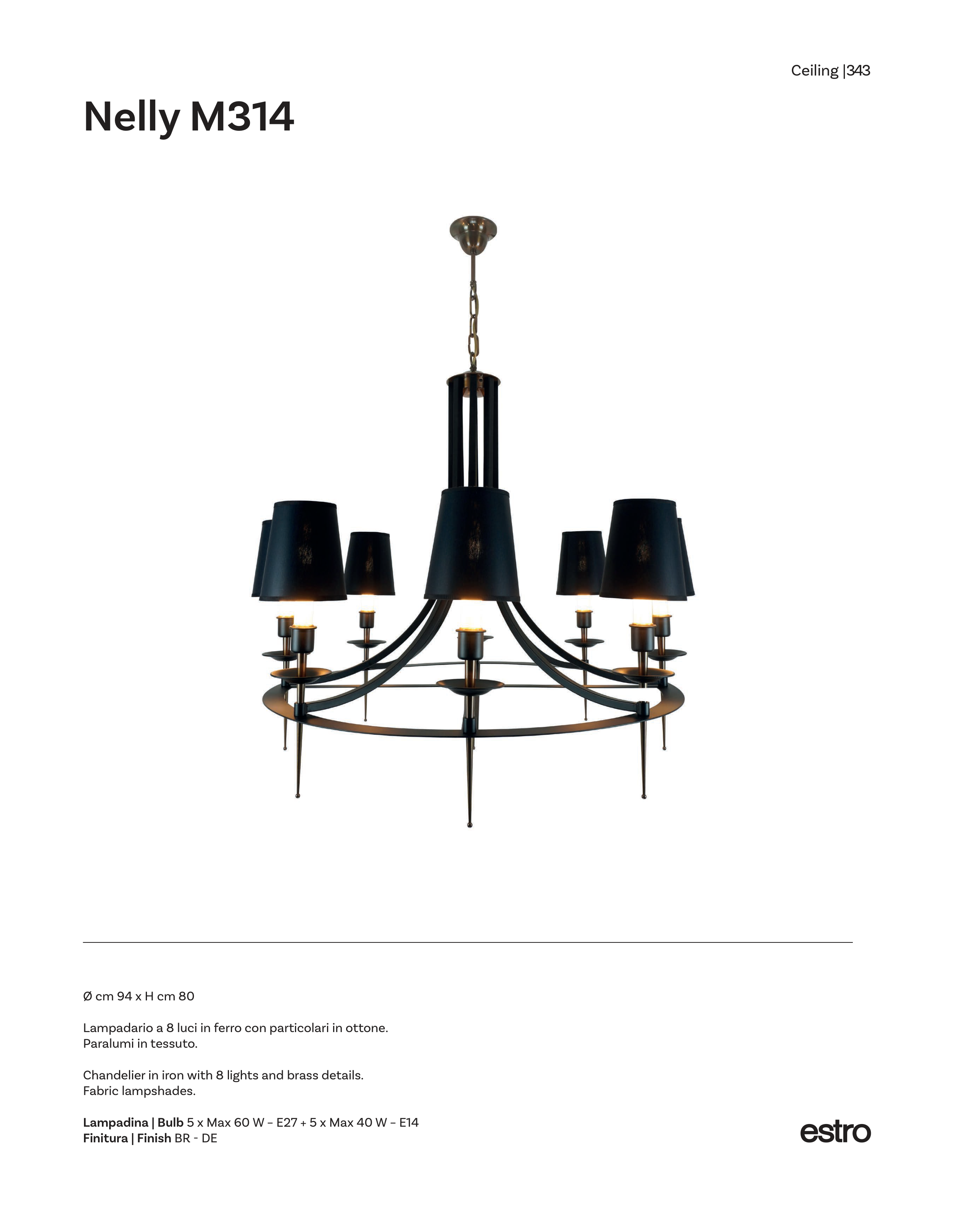 Chandelier in iron with 8 lights and brass details.