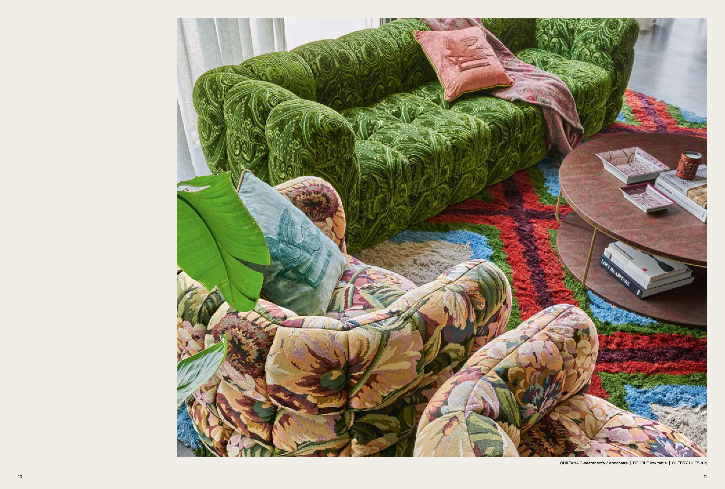 QUILTANA 3-seater sofa / armchairs | DOUBLE low table | CHERRY HUES rug