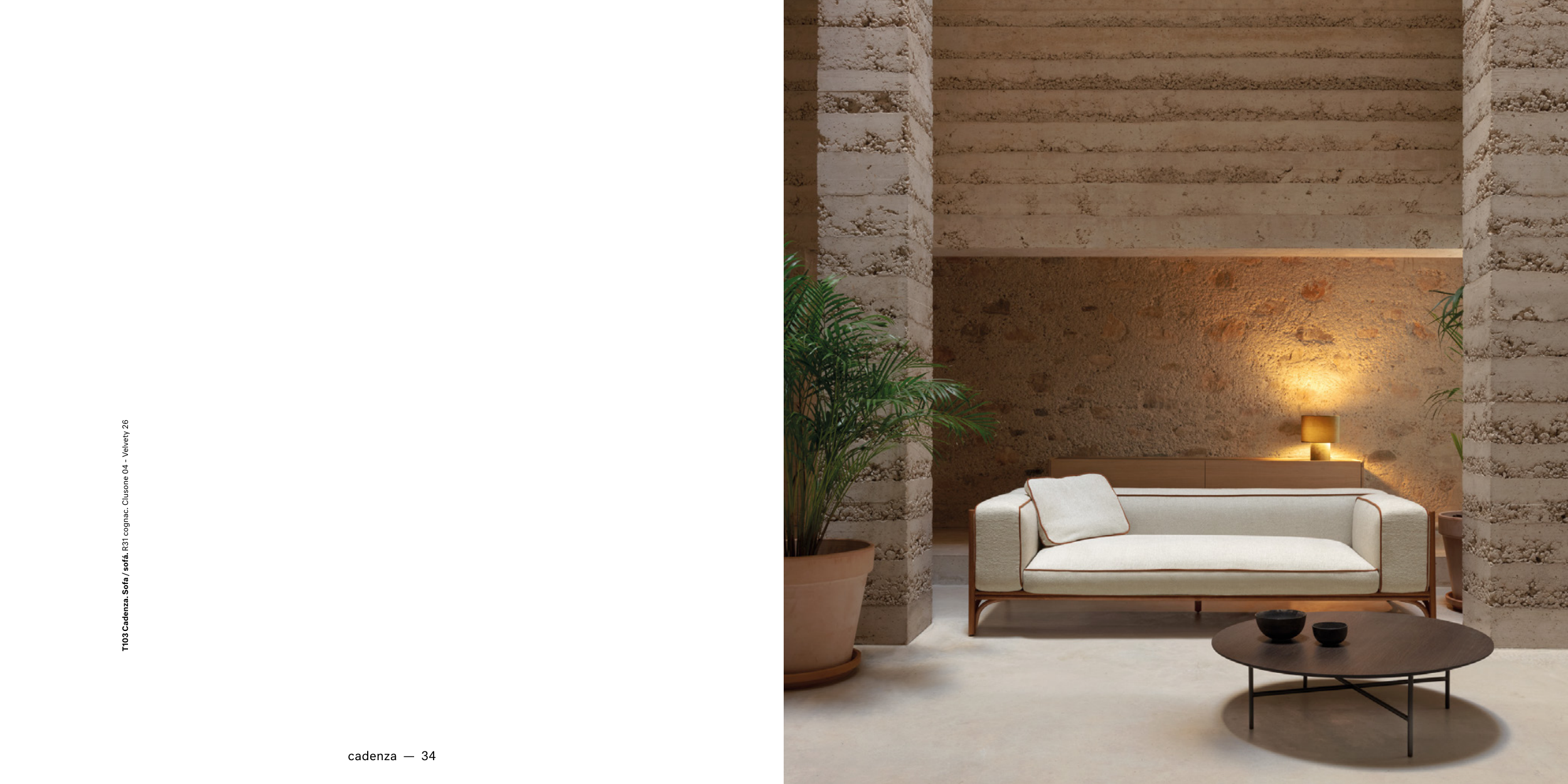 T103 Cadenza. Sofa / sofá. R31 cognac. Clusone 04 - Velvety 26