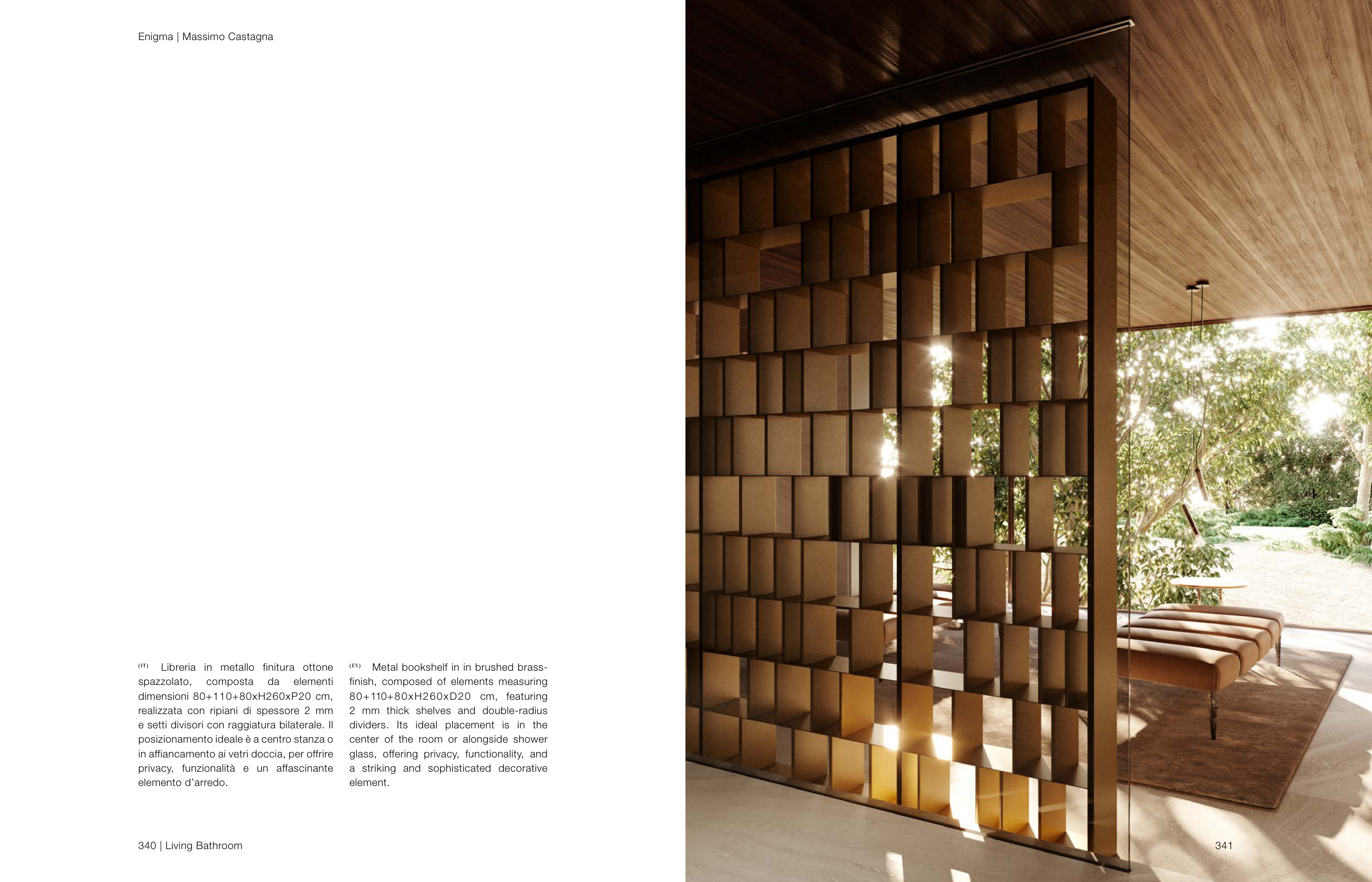 Libreria in metallo finitura ottone