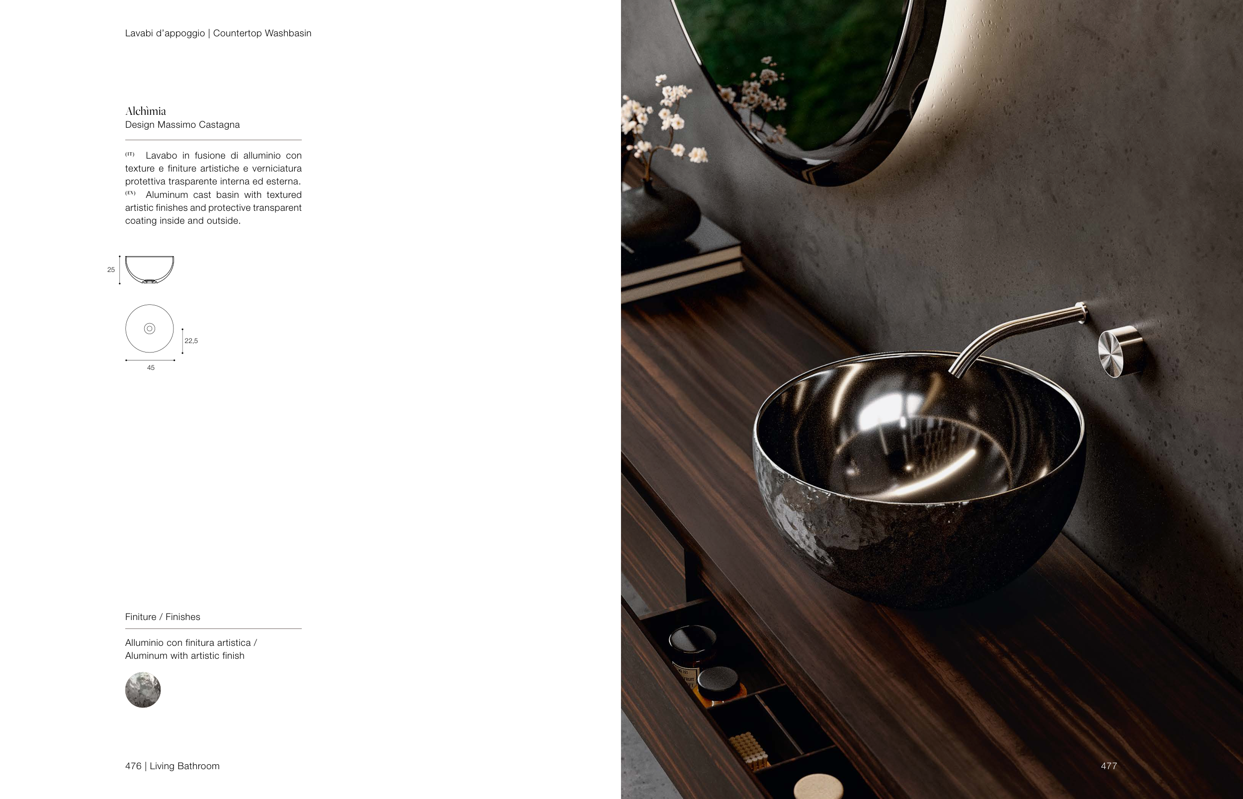Lavabo in fusione di alluminio con