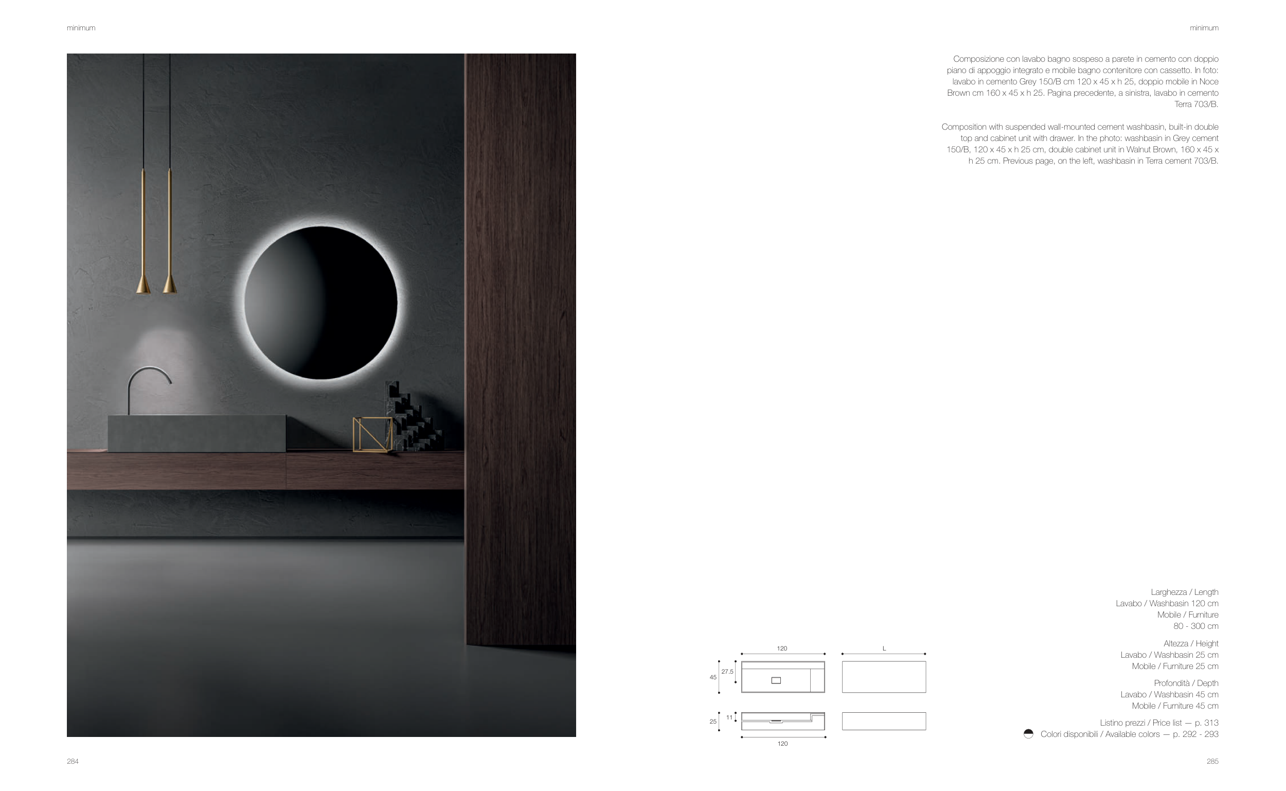 h 25 cm. Previous page, on the left, washbasin in Terra cement 703/B.