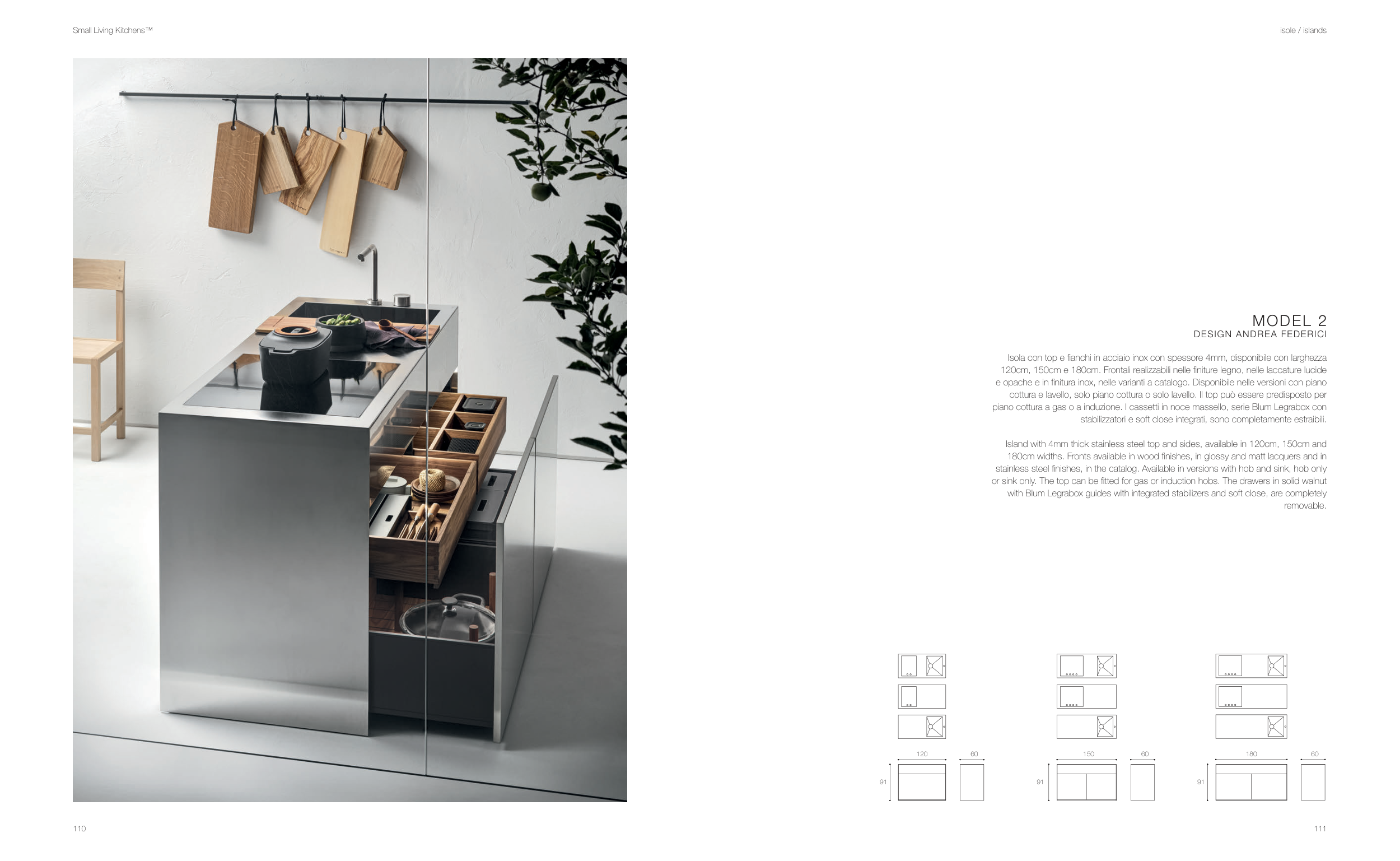 stainless steel finishes, in the catalog. Available in versions with hob and sink, hob only