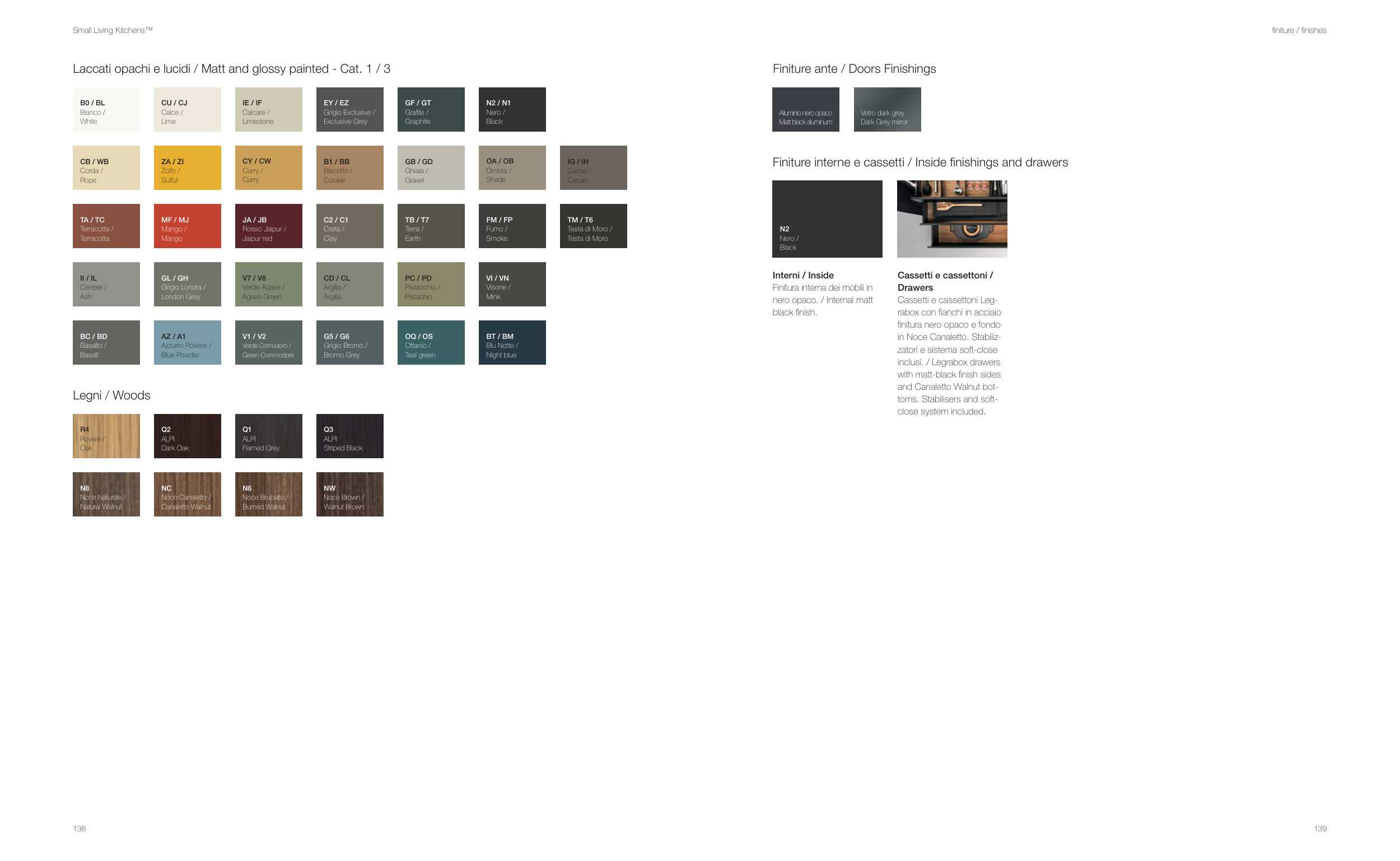 Finiture interne e cassetti / Inside finishings and drawers
