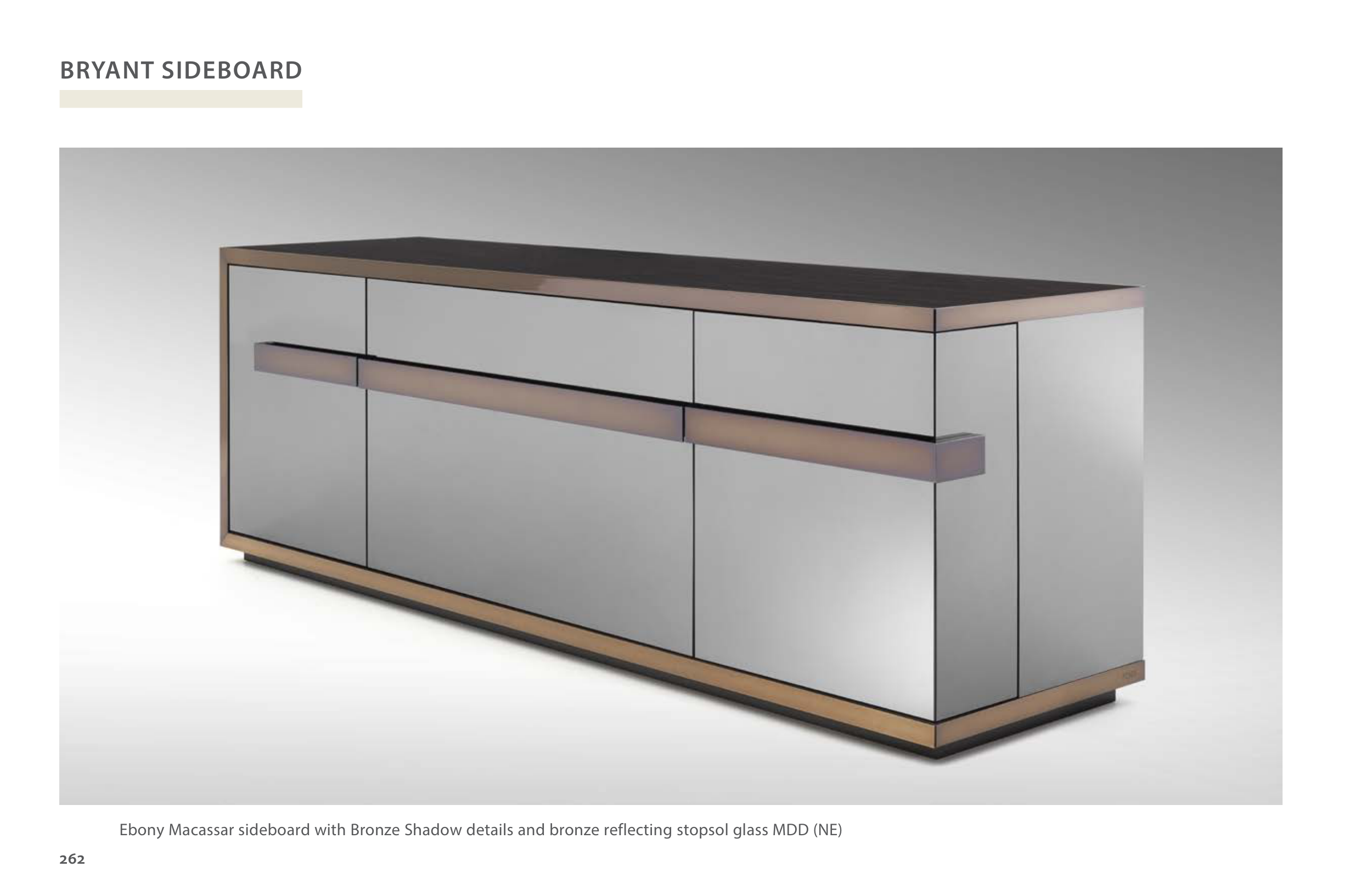 Ebony Macassar sideboard with Bronze Shadow details and bronze reflecting stopsol glass MDD (NE)