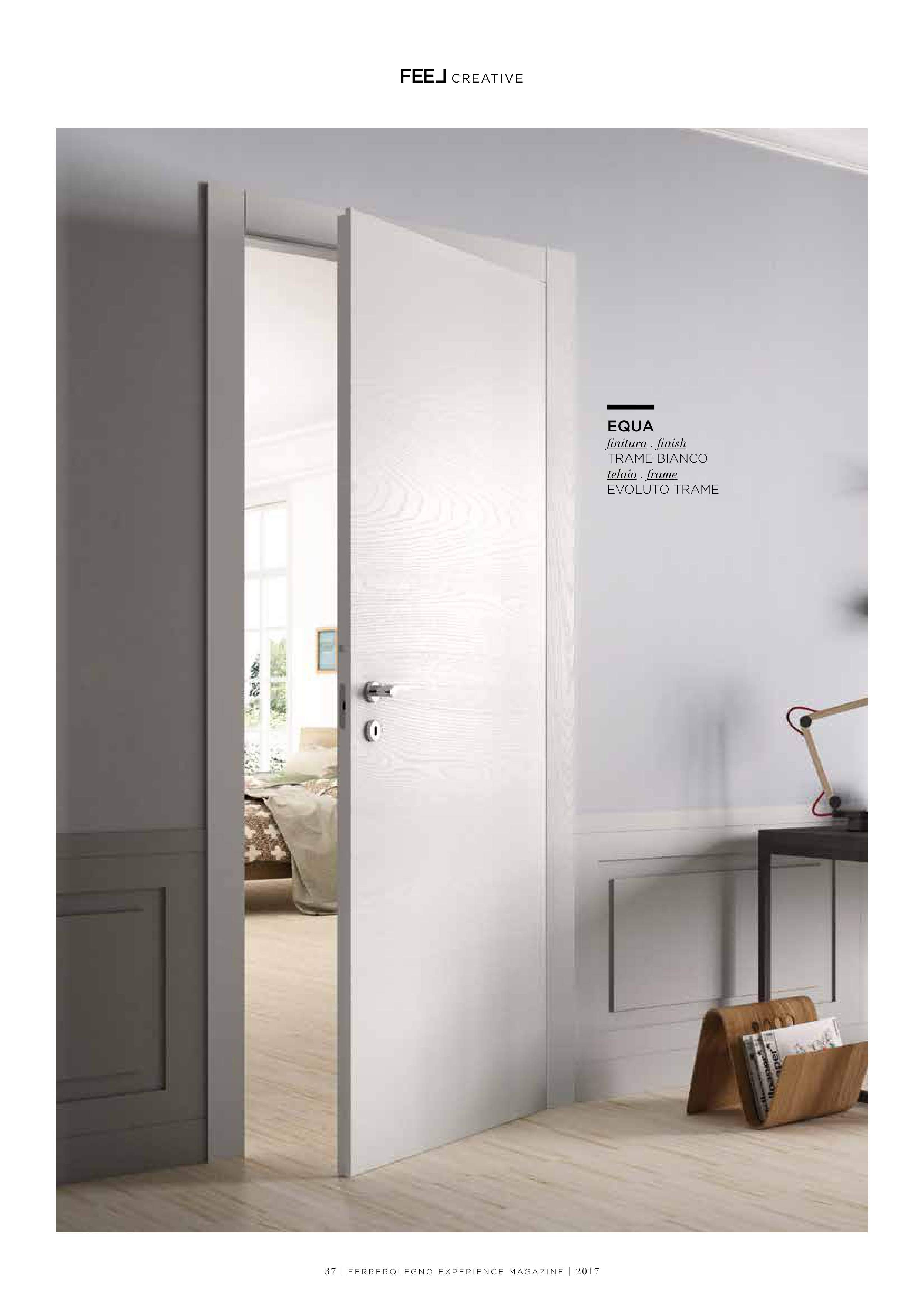 36 | F E R R E R O L E G N O E X P E R I E N C E M A G A Z I N E | 2017 37 | F E R R E R O L E G N O E X P E R I E N C E M A G A Z I N E | 2017 CREATIVE EQUA finitura . finish TRAME BIANCO telaio . frame EVOLUTO TRAME
