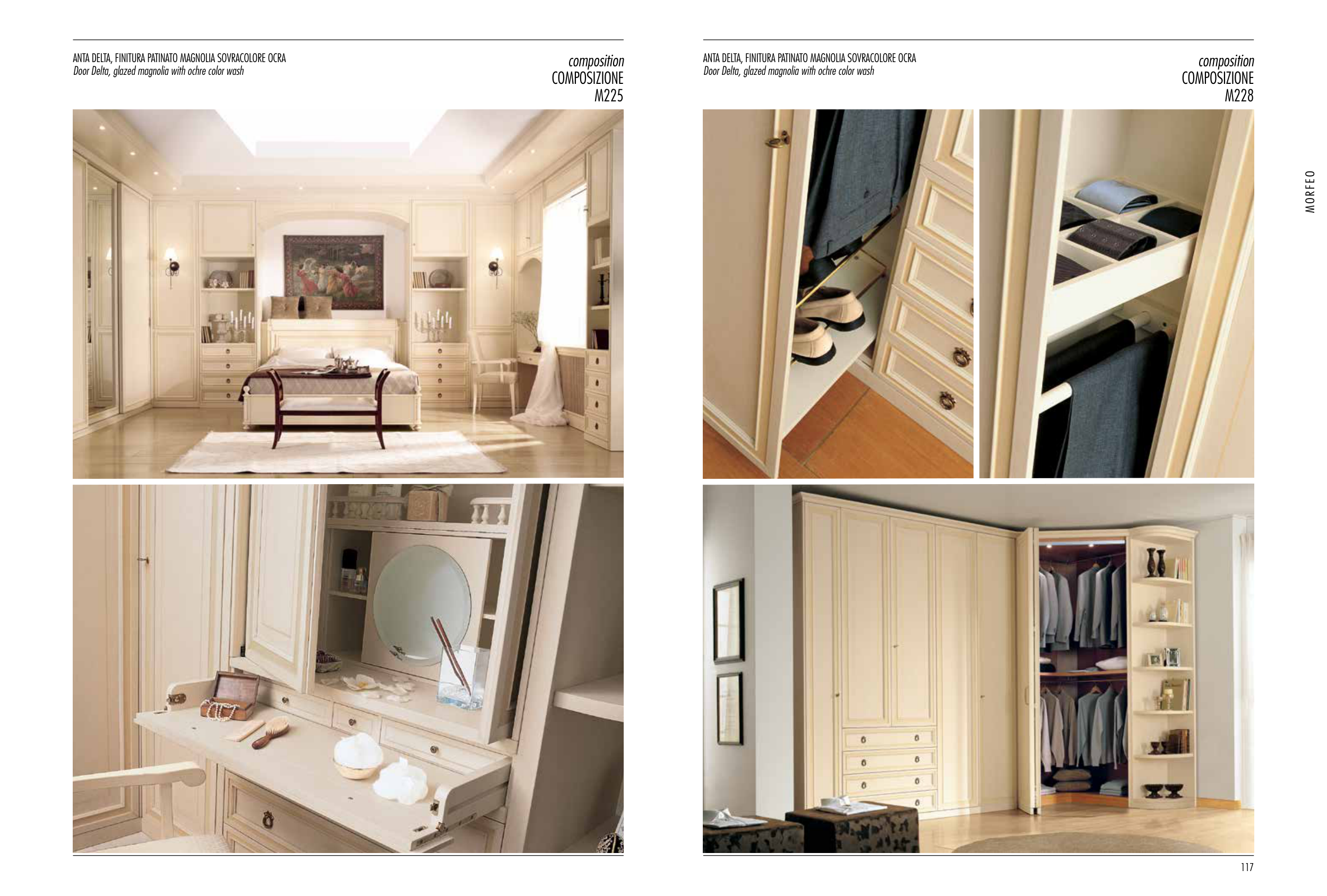 anta delta, finitura patinato magnolia sovracolore ocra