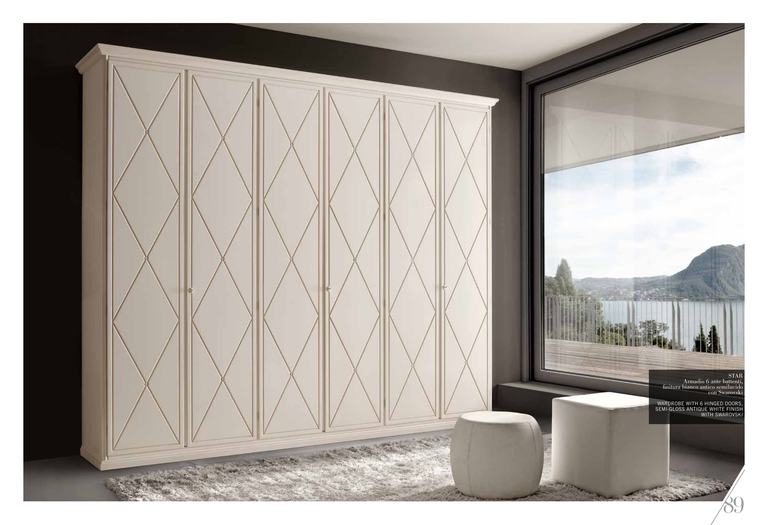 89 STAR Armadio 6 ante battenti, finitura bianco antico semilucido con Swarovski WARDROBE WITH 6 HINGED DOORS, SEMI-GLOSS ANTIQUE WHITE FINISH WITH SWAROVSKI