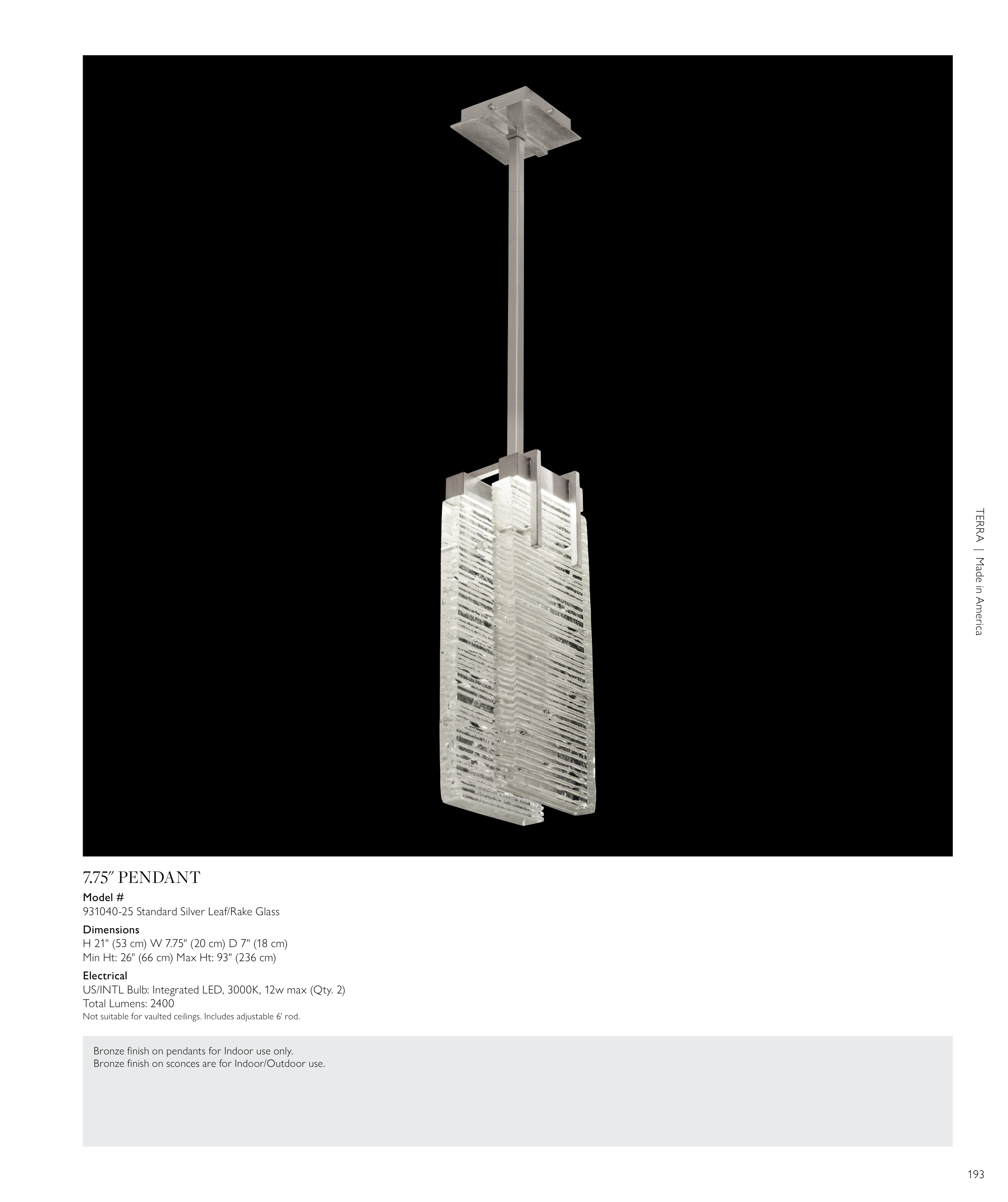Bronze fi nish on pendants for Indoor use only.