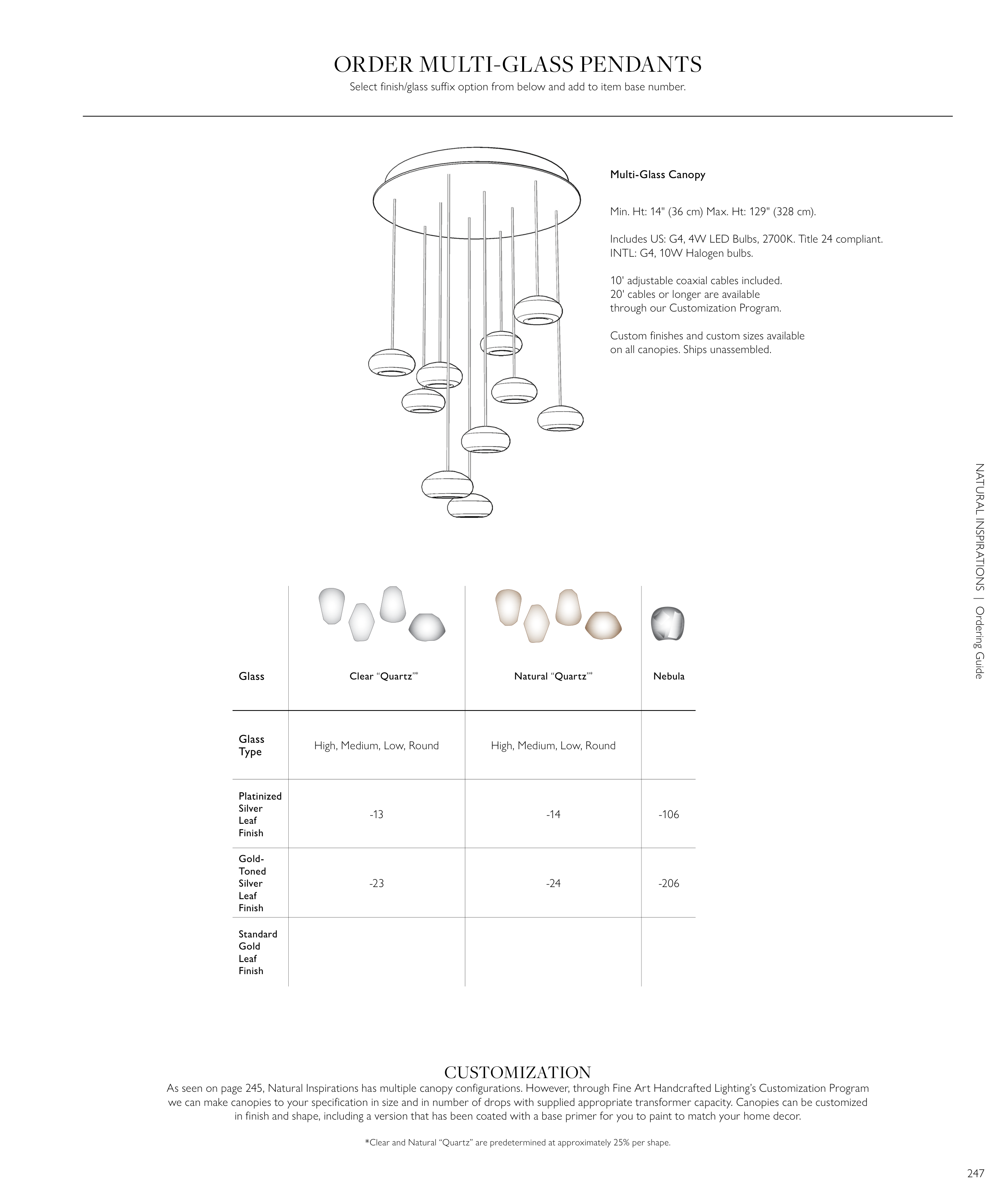 As seen on page 245, Natural Inspirations has multiple canopy configurations. However, through Fine Art Handcrafted Lighting’s Customization Program