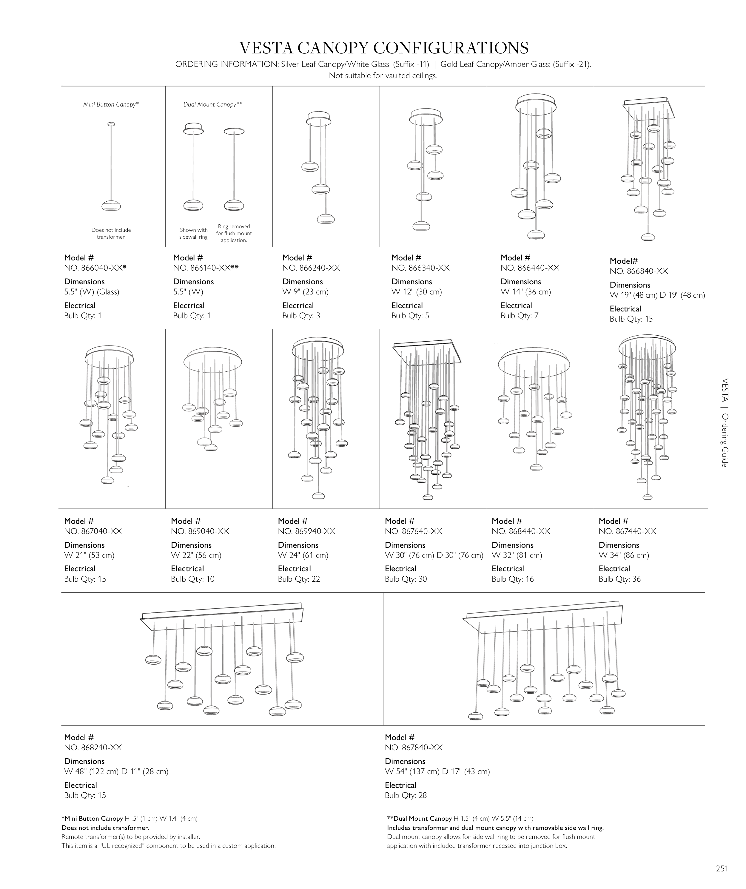 ORDERING INFORMATION: Silver Leaf Canopy/White Glass: (Suffi x -11) | Gold Leaf Canopy/Amber Glass: (Suffi x -21).
