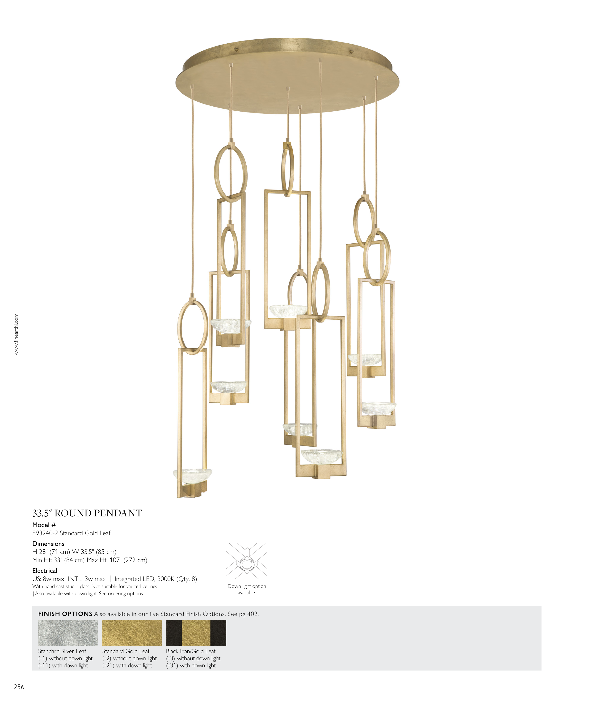 With hand cast studio glass. Not suitable for vaulted ceilings.