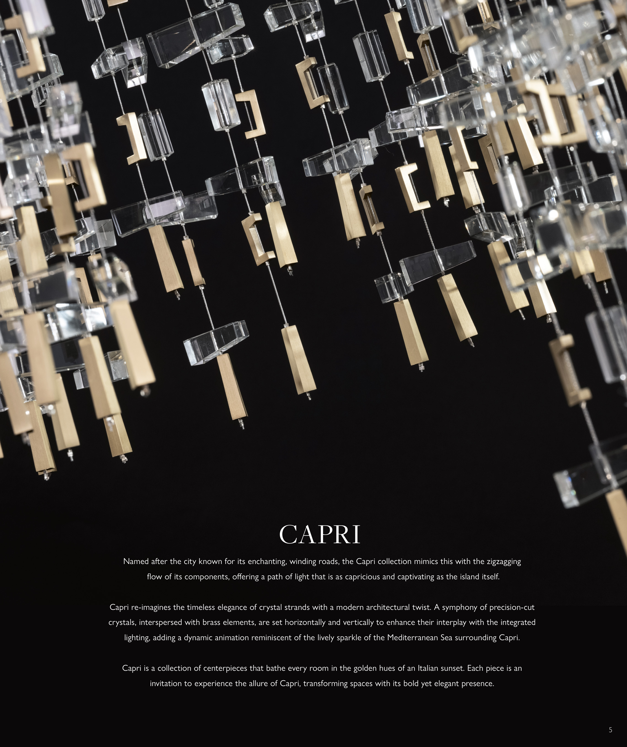 Capri re-imagines the timeless elegance of crystal strands with a modern architectural twist. A symphony of precision-cut