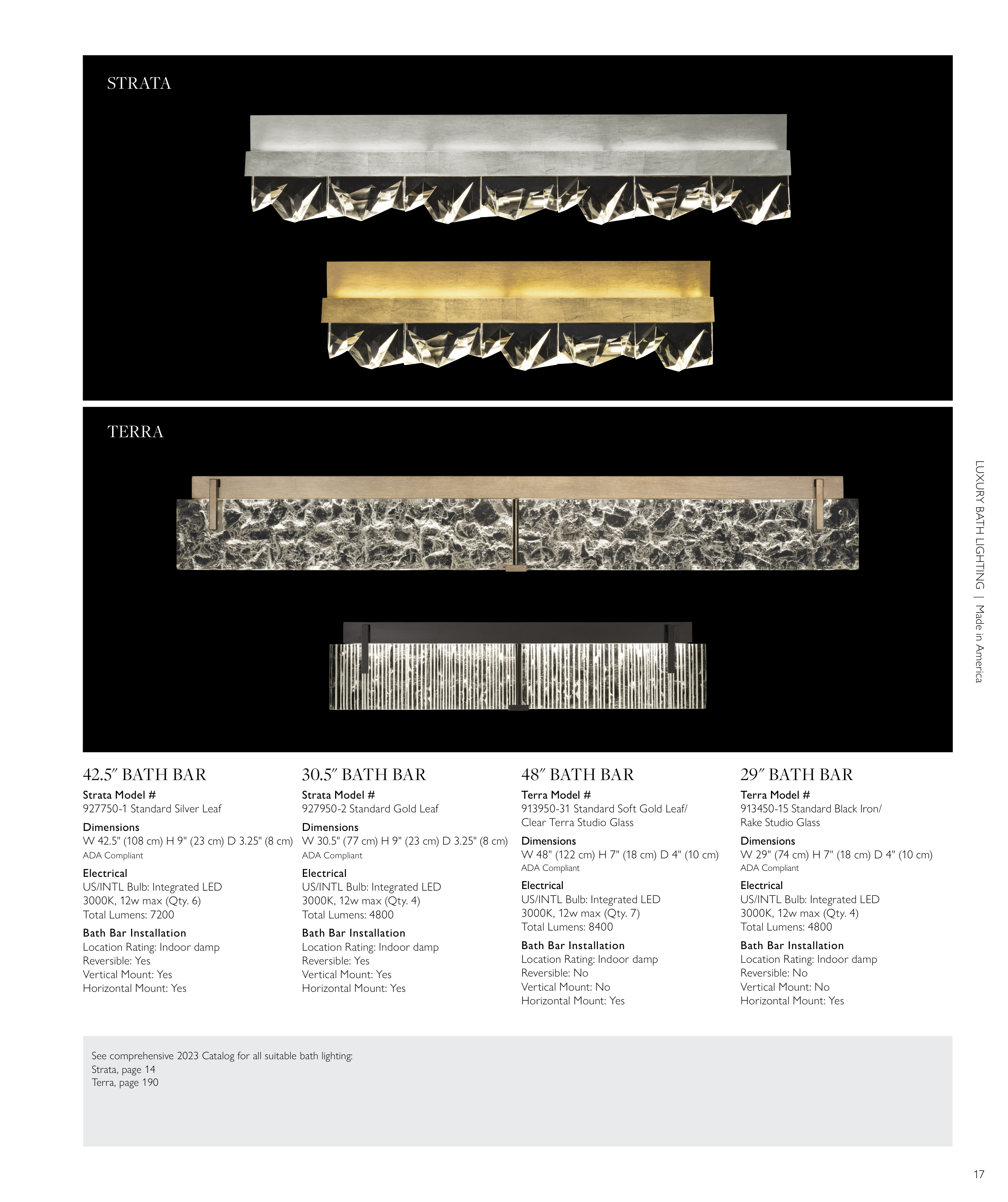 See comprehensive 2023 Catalog for all suitable bath lighting: