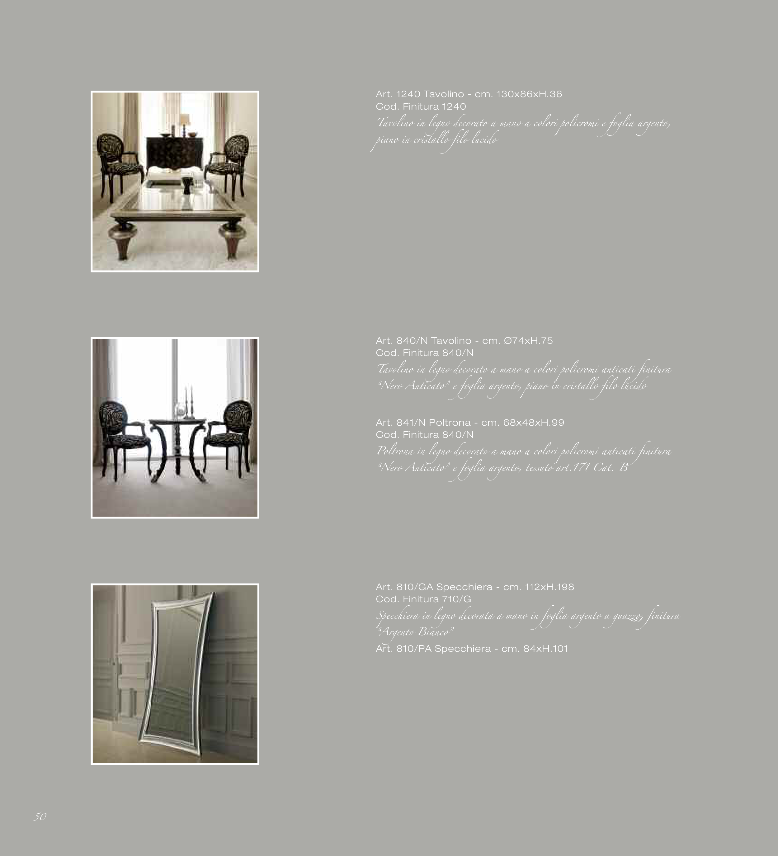 “Nero Anticato” e foglia argento, tessuto art.171 Cat. B