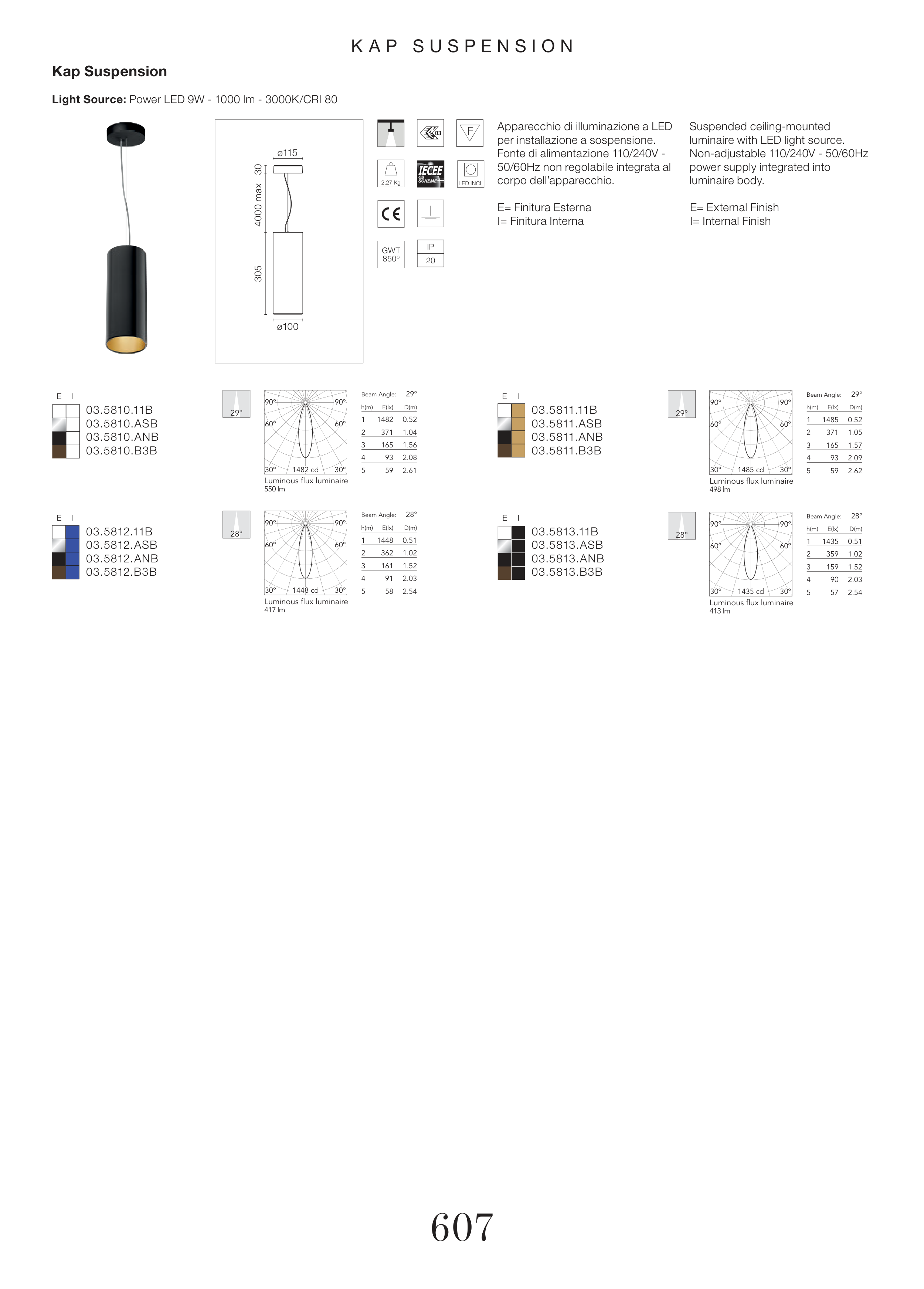 Light Source: Power LED 9W - 1000 lm - 3000K/CRI 80