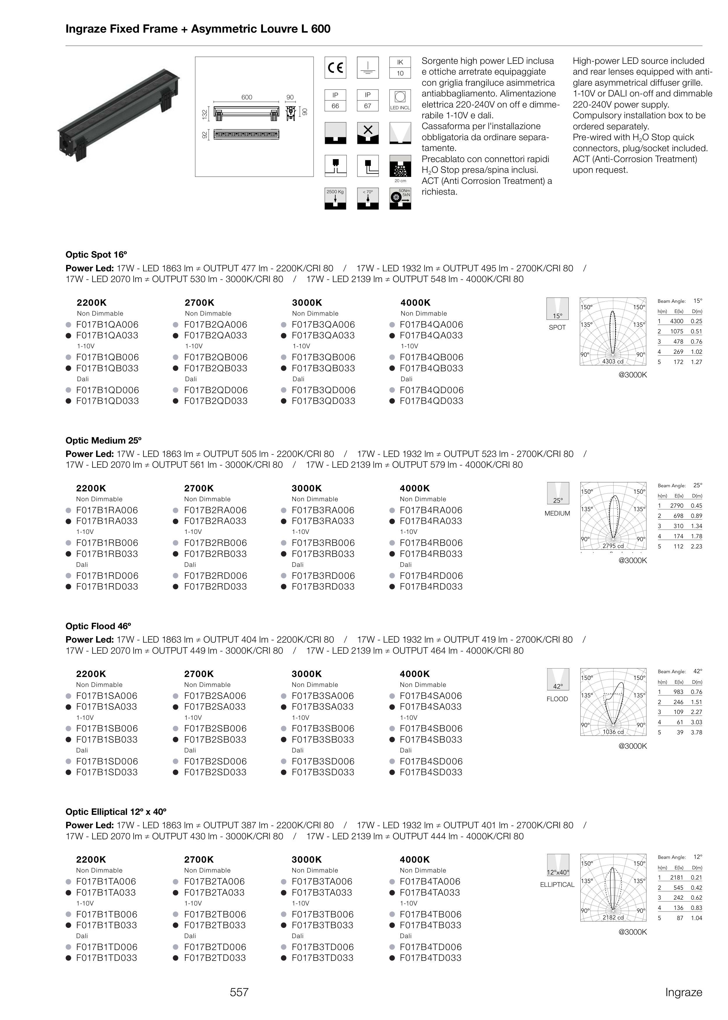 17W - LED 2070 lm ≠ OUTPUT 561 lm - 3000K/CRI 80 / 17W - LED 2139 lm ≠ OUTPUT 579 lm - 4000K/CRI 80
