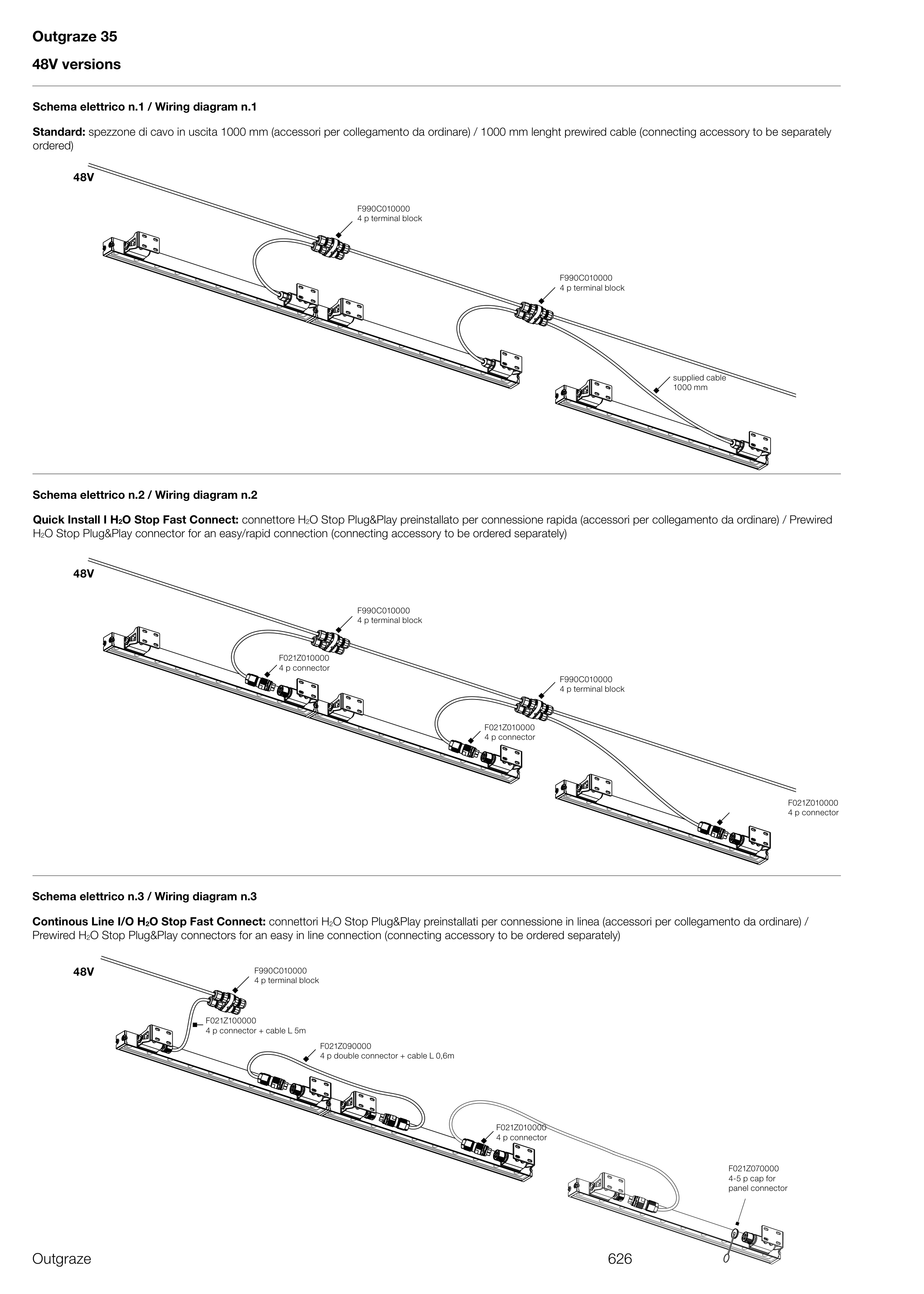 Standard: spezzone di cavo in uscita 1000 mm (accessori per collegamento da ordinare) / 1000 mm lenght prewired cable (connecting accessory to be separately