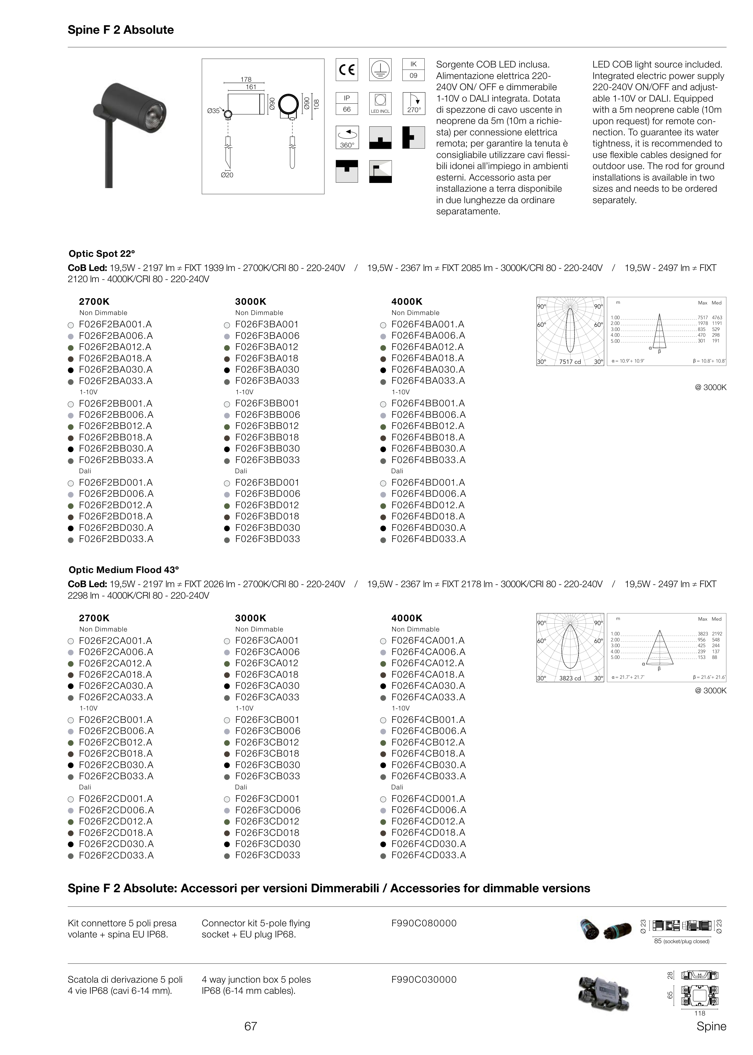 Spine F 2 Absolute: Accessori per versioni Dimmerabili / Accessories for dimmable versions