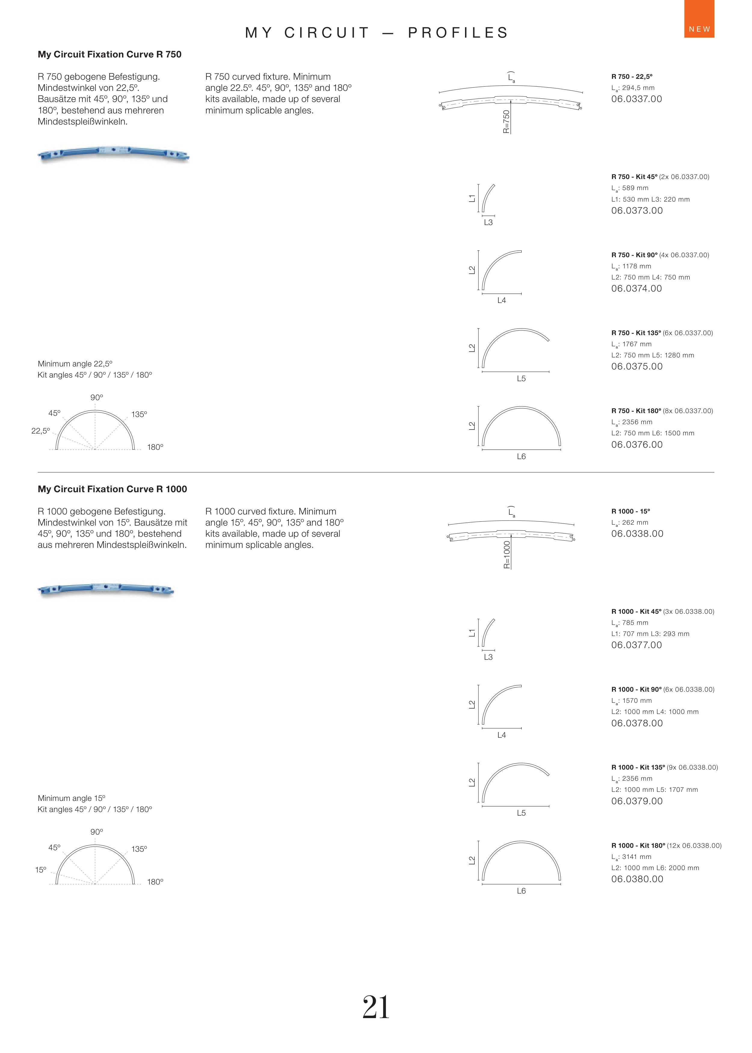 Mindestwinkel von 15º. Bausätze mit