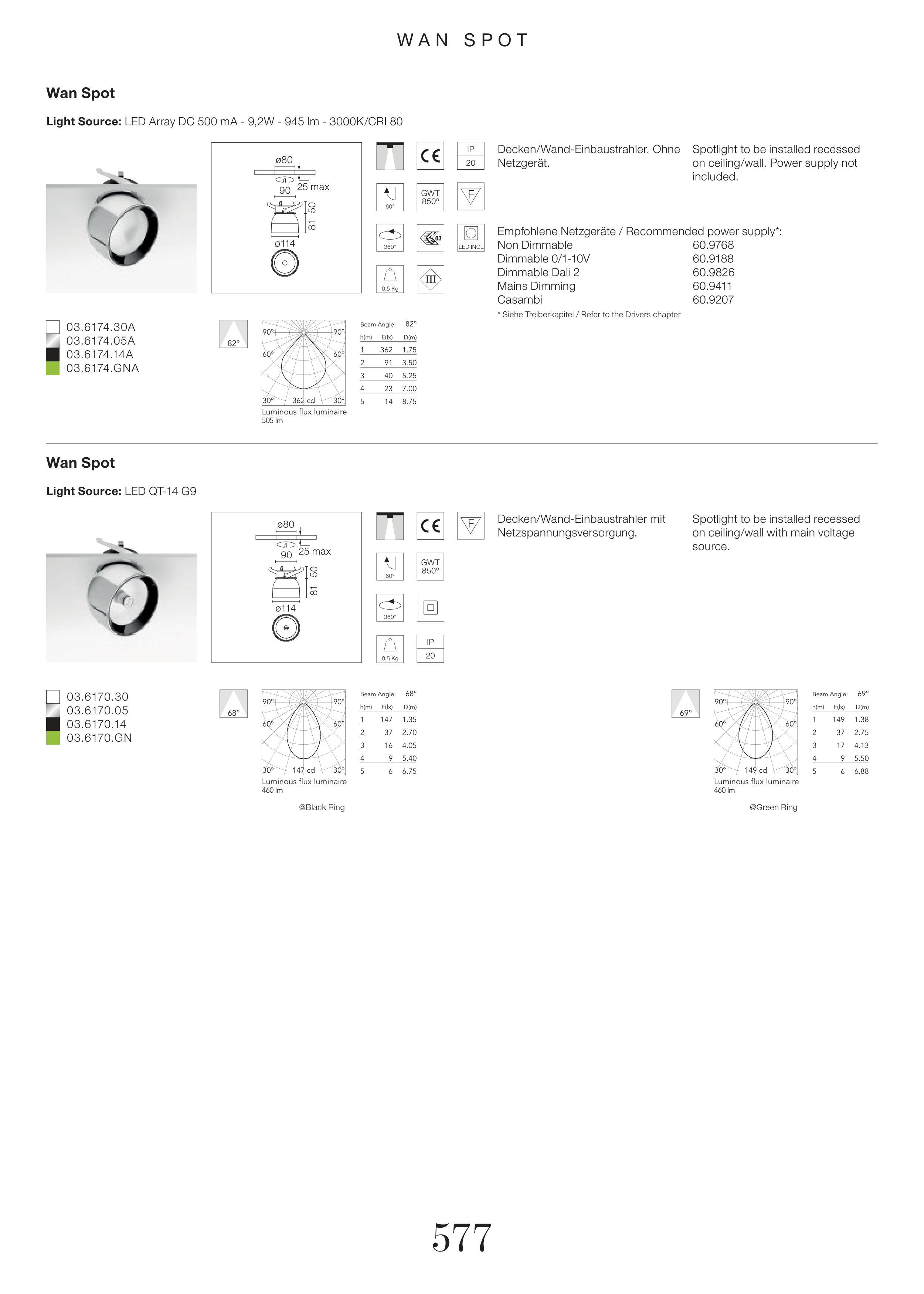 Light Source: LED Array DC 500 mA - 9,2W - 945 lm - 3000K/CRI 80