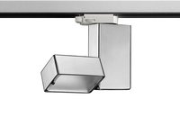 Luminaire for ceiling or three-phase electric track installation. For LED lamps, very low voltage halogen lamps, direct mains supply and discharge lamps. Self-extinguishing ceramic or engineering plastic lamp holders, with single-pole, transparent electric wires with double Teflon insulation. Aluminum body, placed above the lamp holder, black thermoplastic and 4mm tempered glass screen-support ring. Die-cast aluminum alloy body, cover and adjustable lamp support, with hand-polished finish and protected with transparent liquid paint, or powder-coated white or matt black. Thermoplastic three-phase adapter.