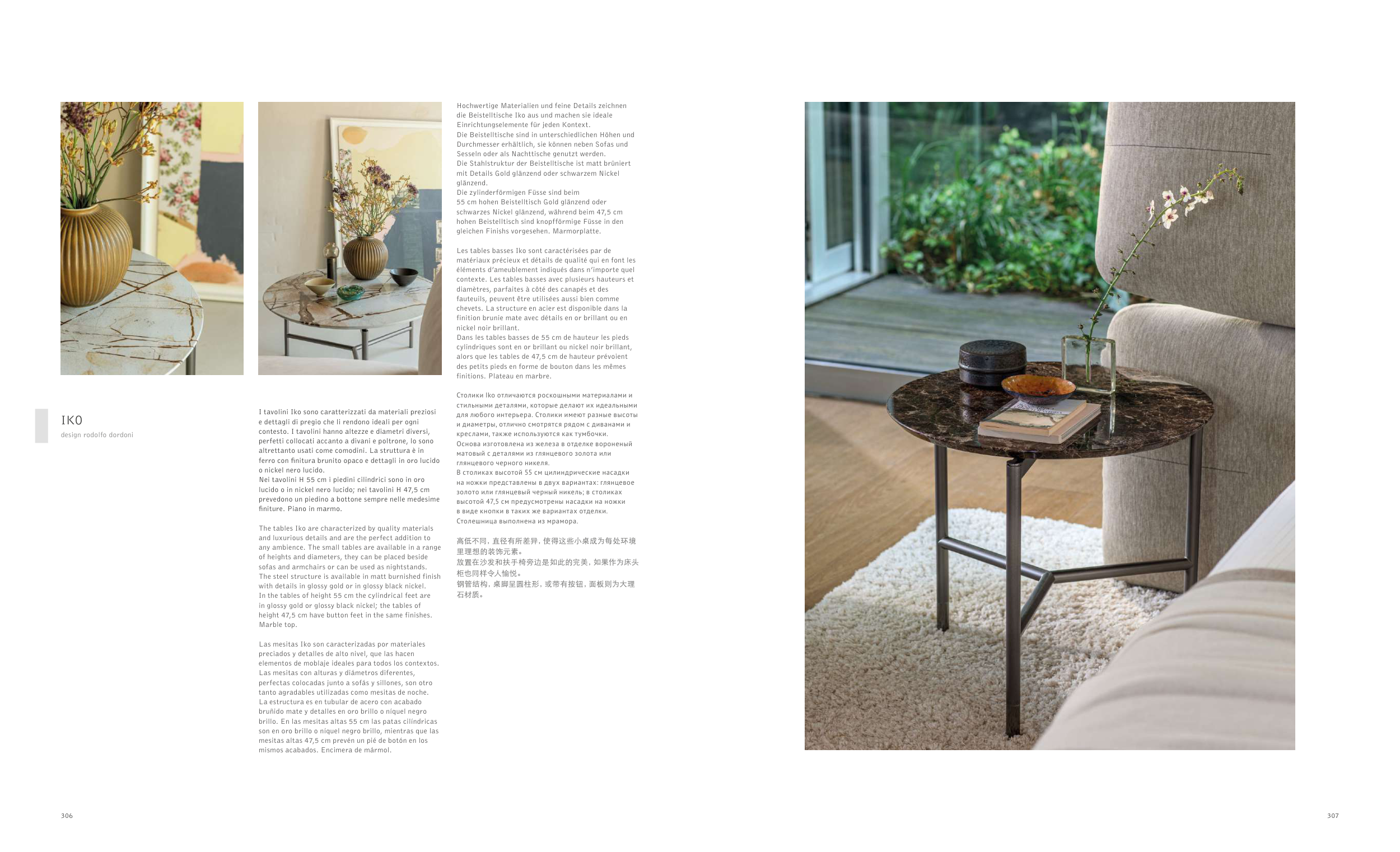 I tavolini Iko sono caratterizzati da materiali preziosi