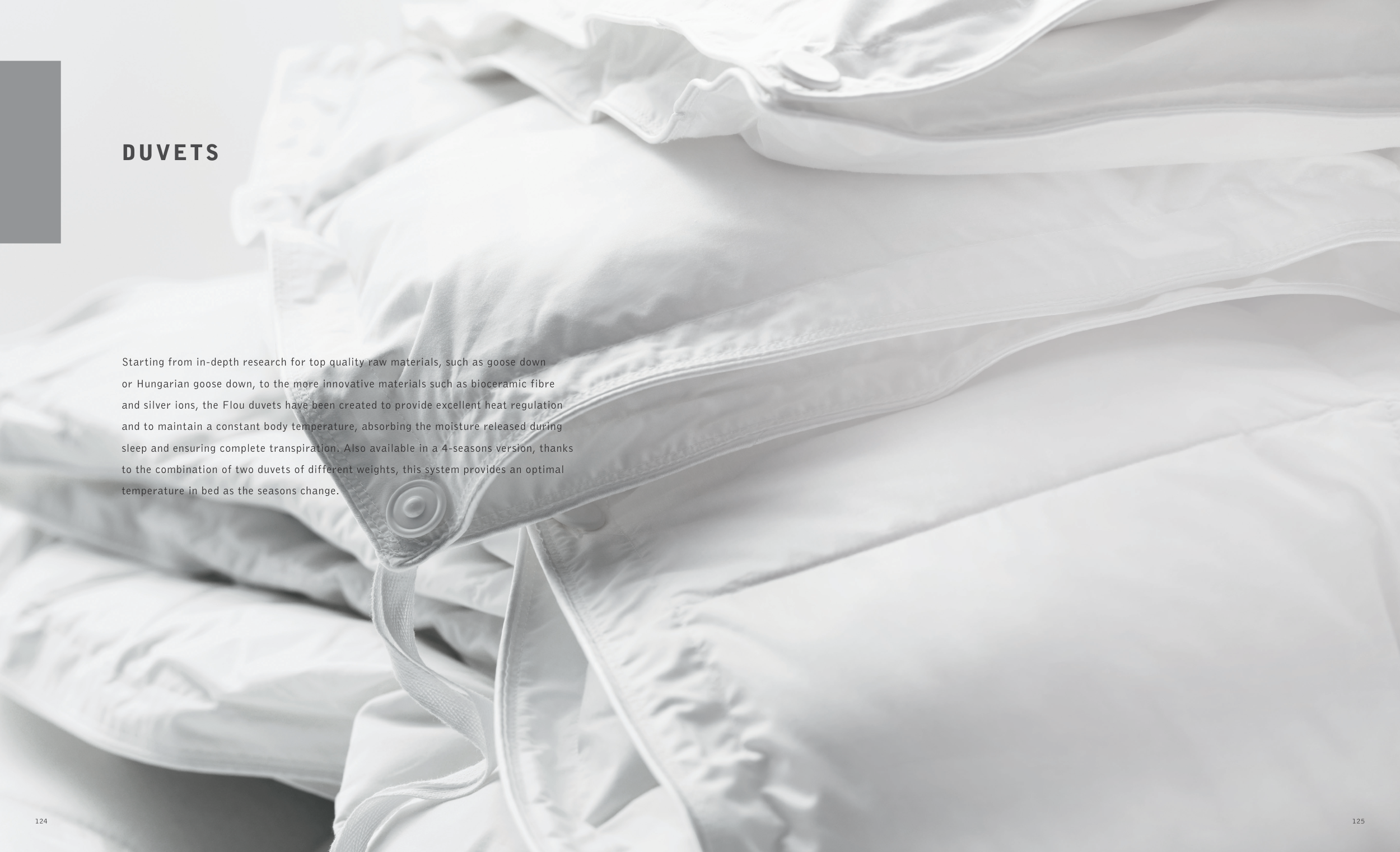 and silver ions, the Flou duvets have been created to provide excellent heat regulation