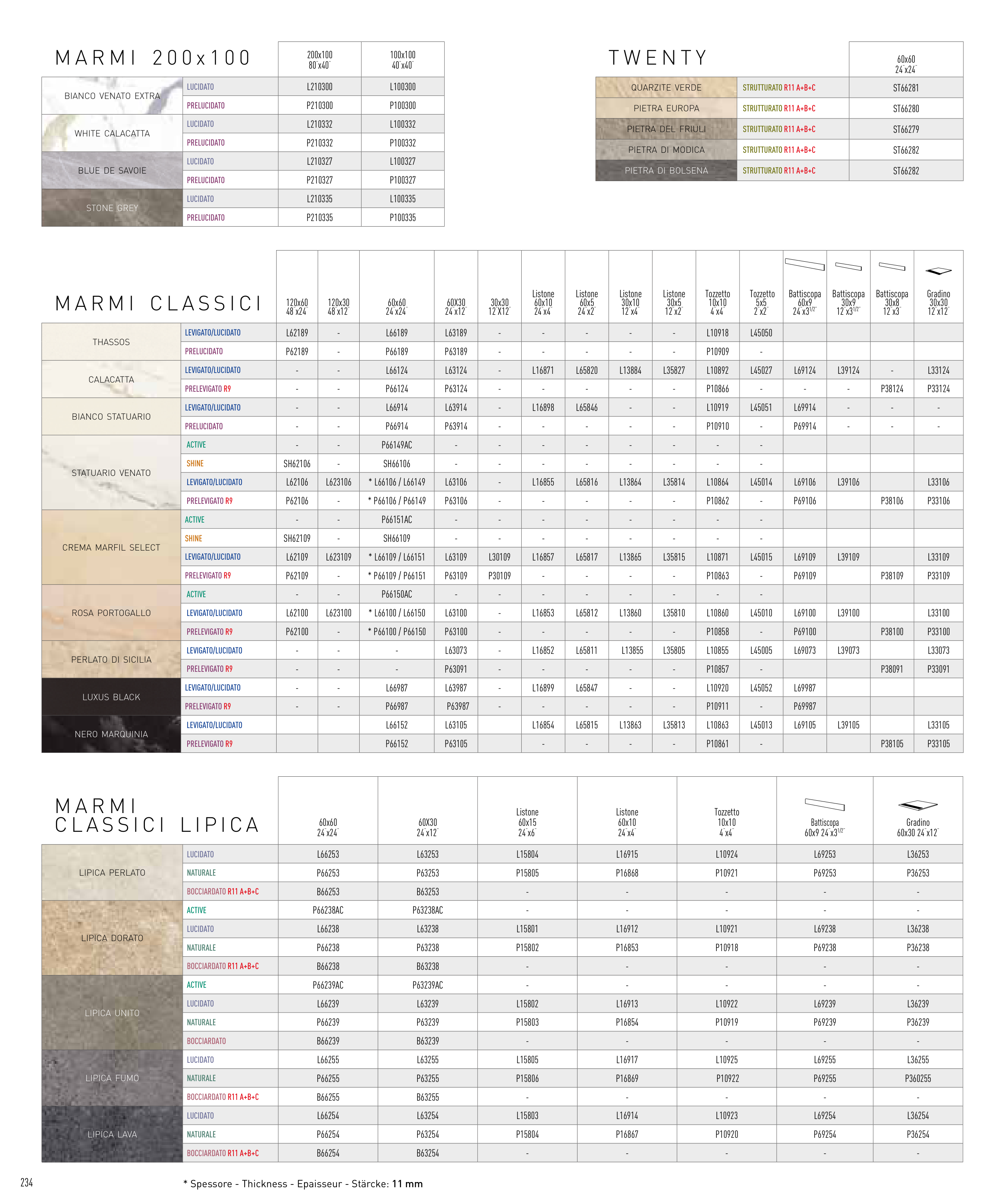 * Spessore - Thickness - Epaisseur - Stärcke: 11 mm