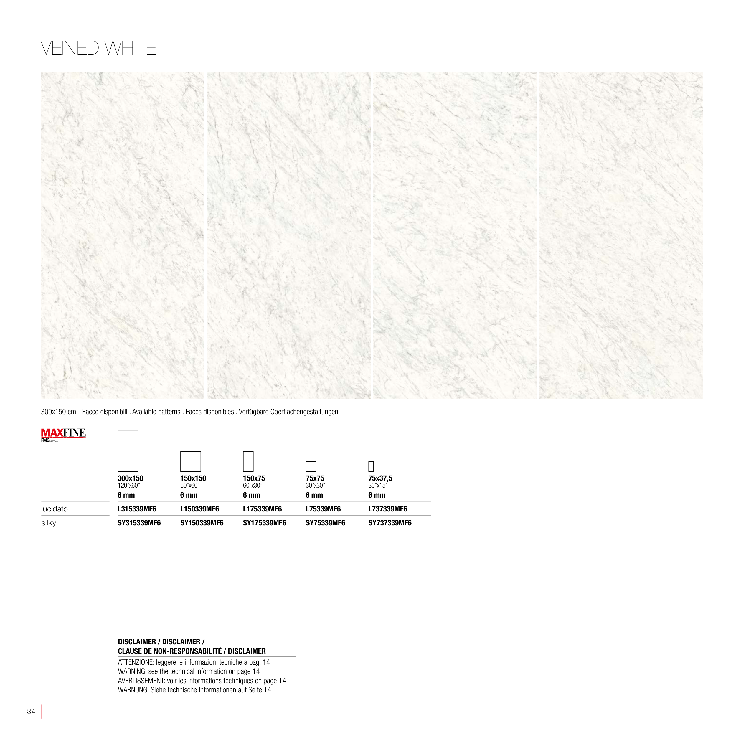 300x150 cm - Facce disponibili . Available patterns . Faces disponibles . Verfügbare Oberflächengestaltungen