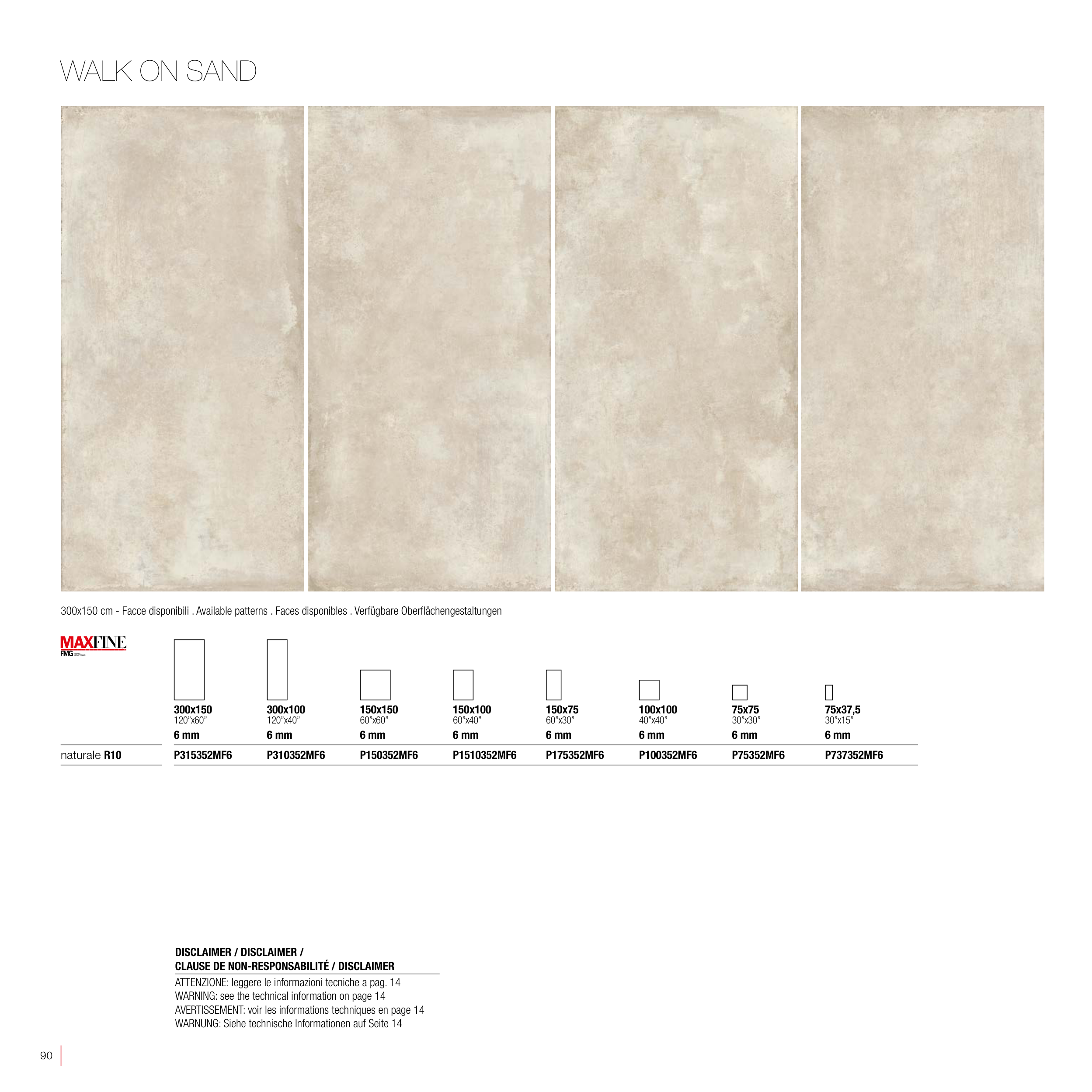 300x150 cm - Facce disponibili . Available patterns . Faces disponibles . Verfügbare Oberflächengestaltungen
