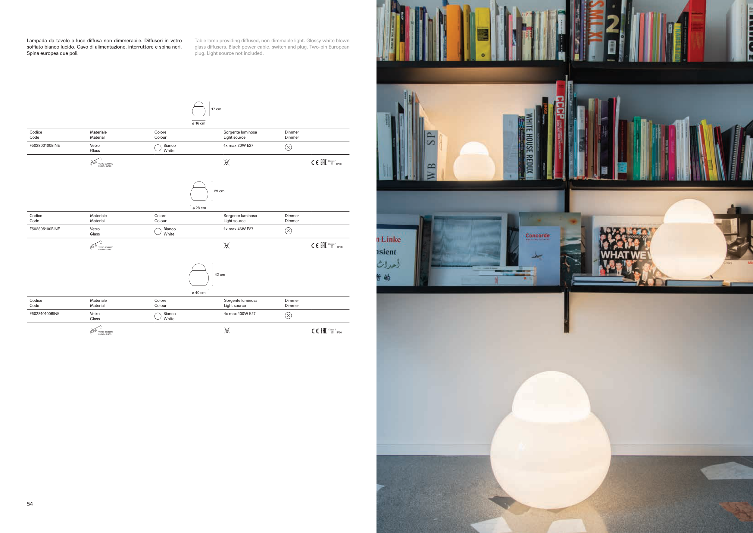Lampada da tavolo a luce diffusa non dimmerabile. Diffusori in vetro
