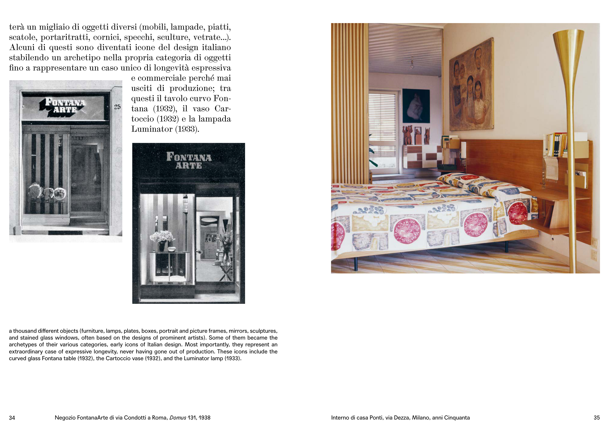 curved glass Fontana table (1932), the Cartoccio vase (1932), and the Luminator lamp (1933).