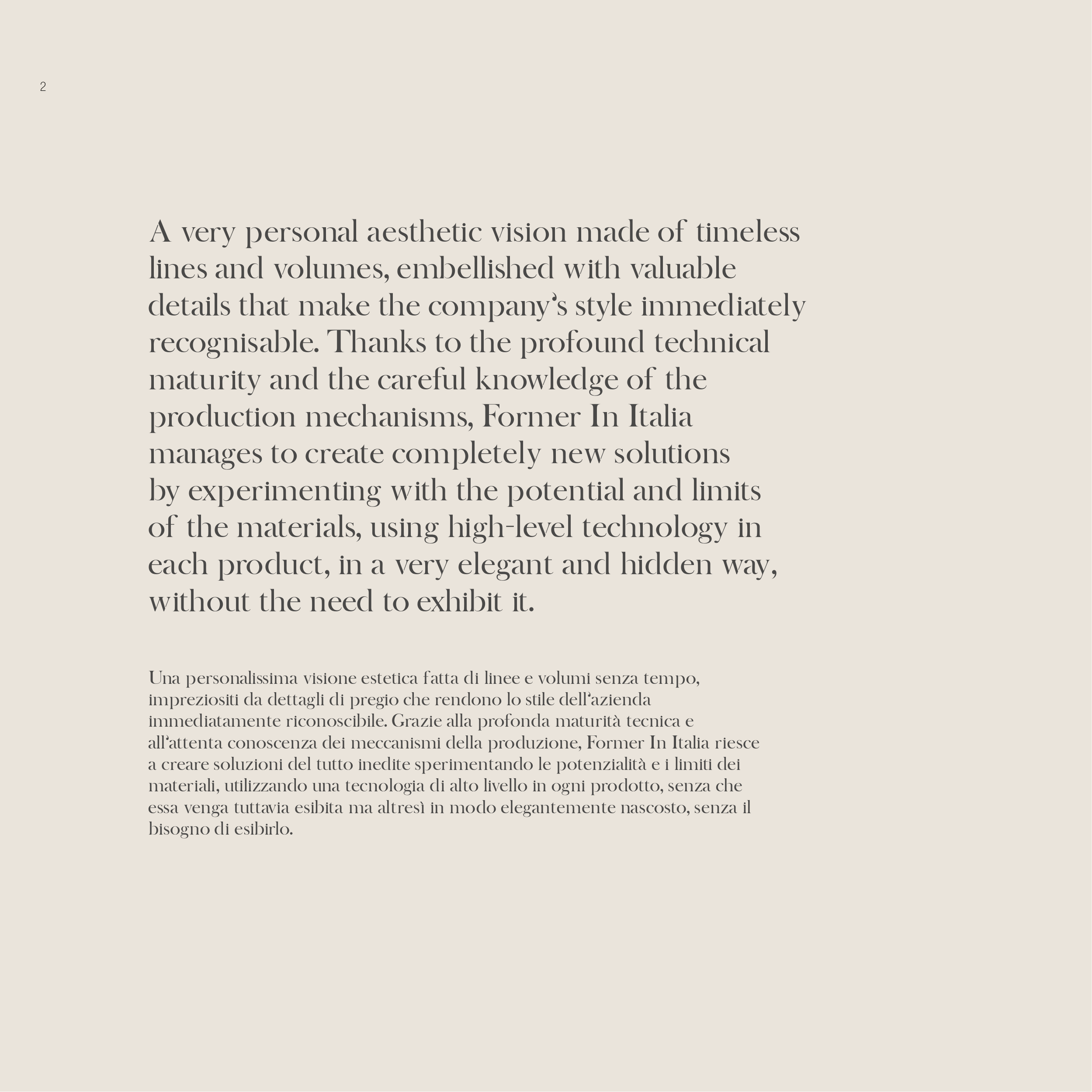Una personalissima visione estetica fatta di linee e volumi senza tempo,