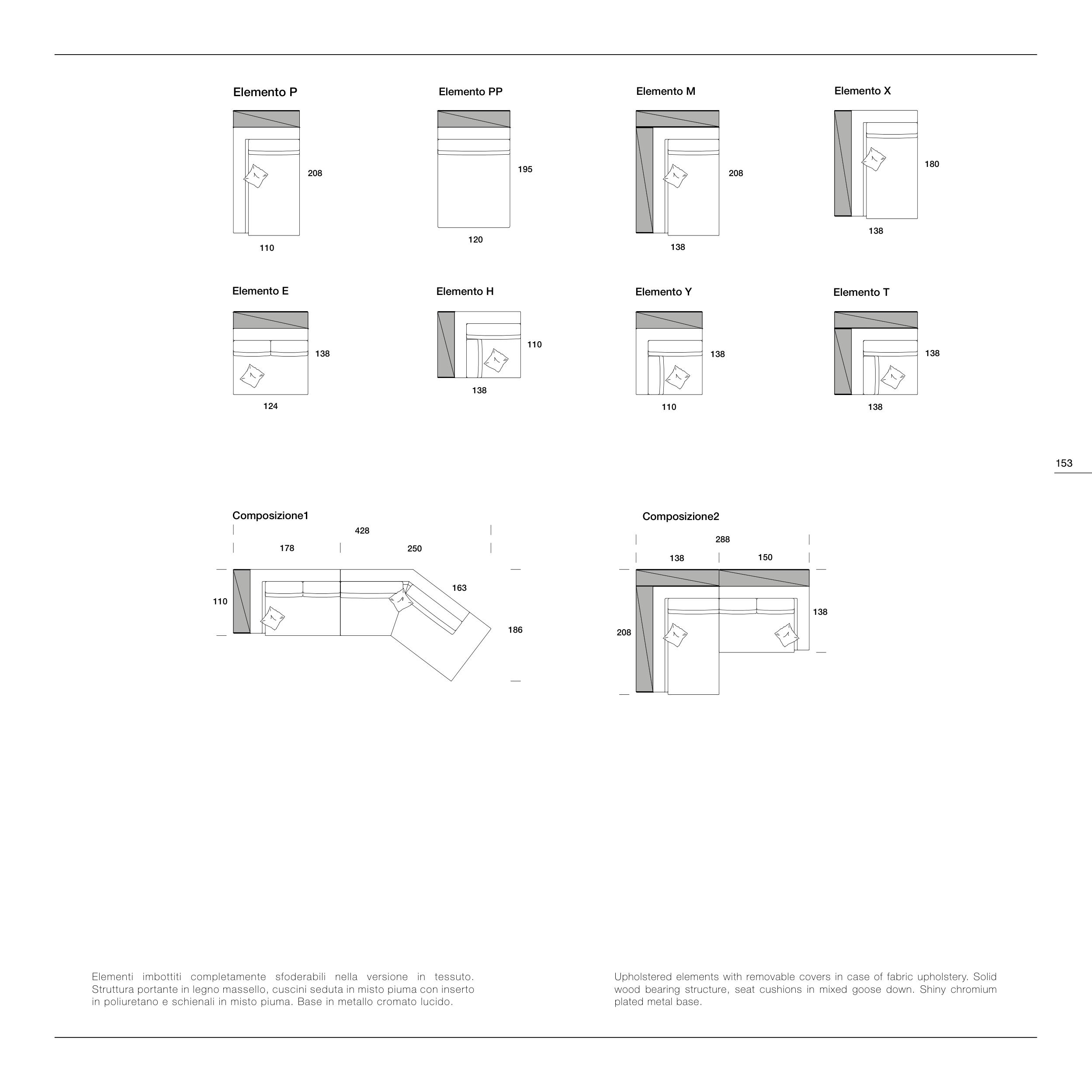 Elementi imbottiti completamente sfoderabili nella versione in tessuto.