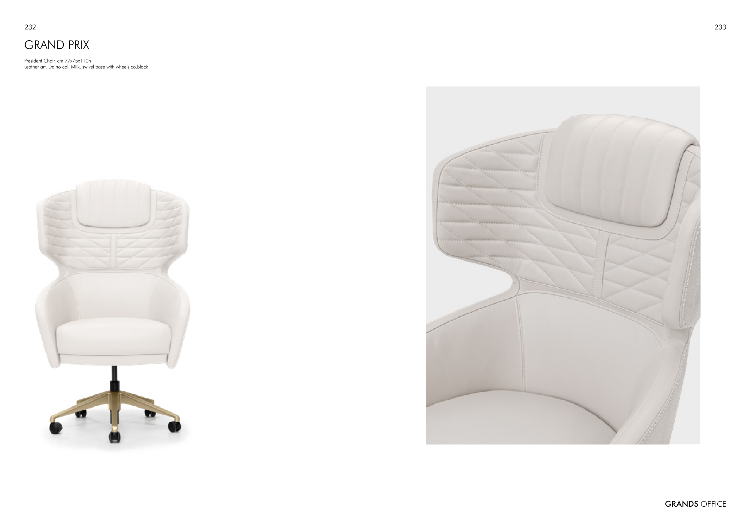 Leather art. Daino col. Milk, swivel base with wheels co.black