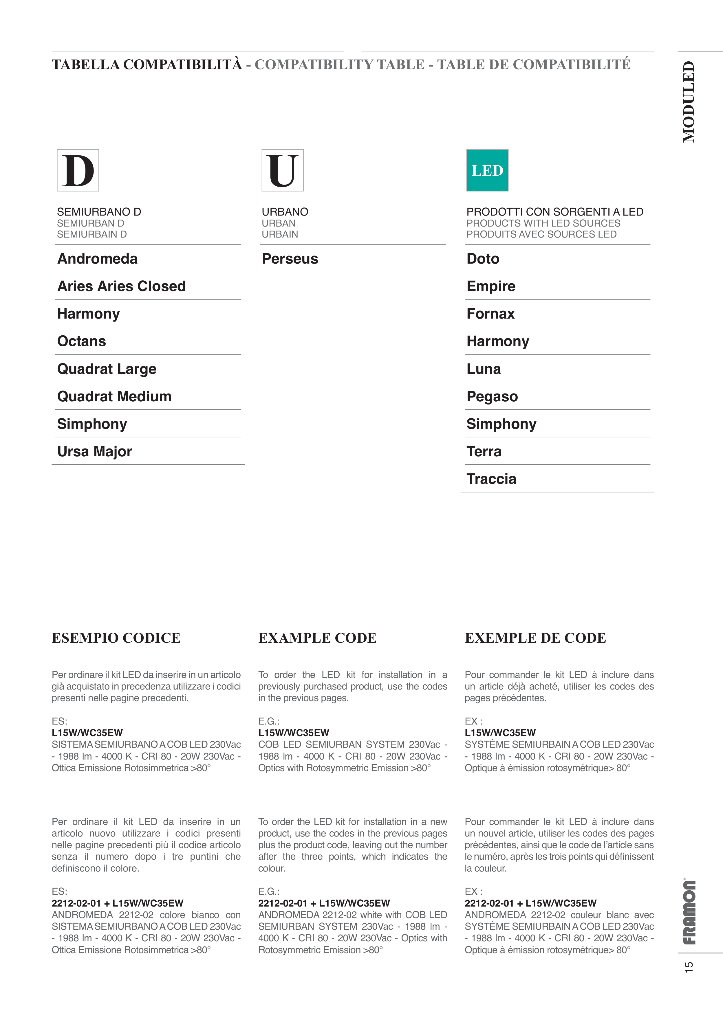 TABELLA COMPATIBILITÀ - COMPATIBILITY TABLE - TABLE DE COMPATIBILITÉ