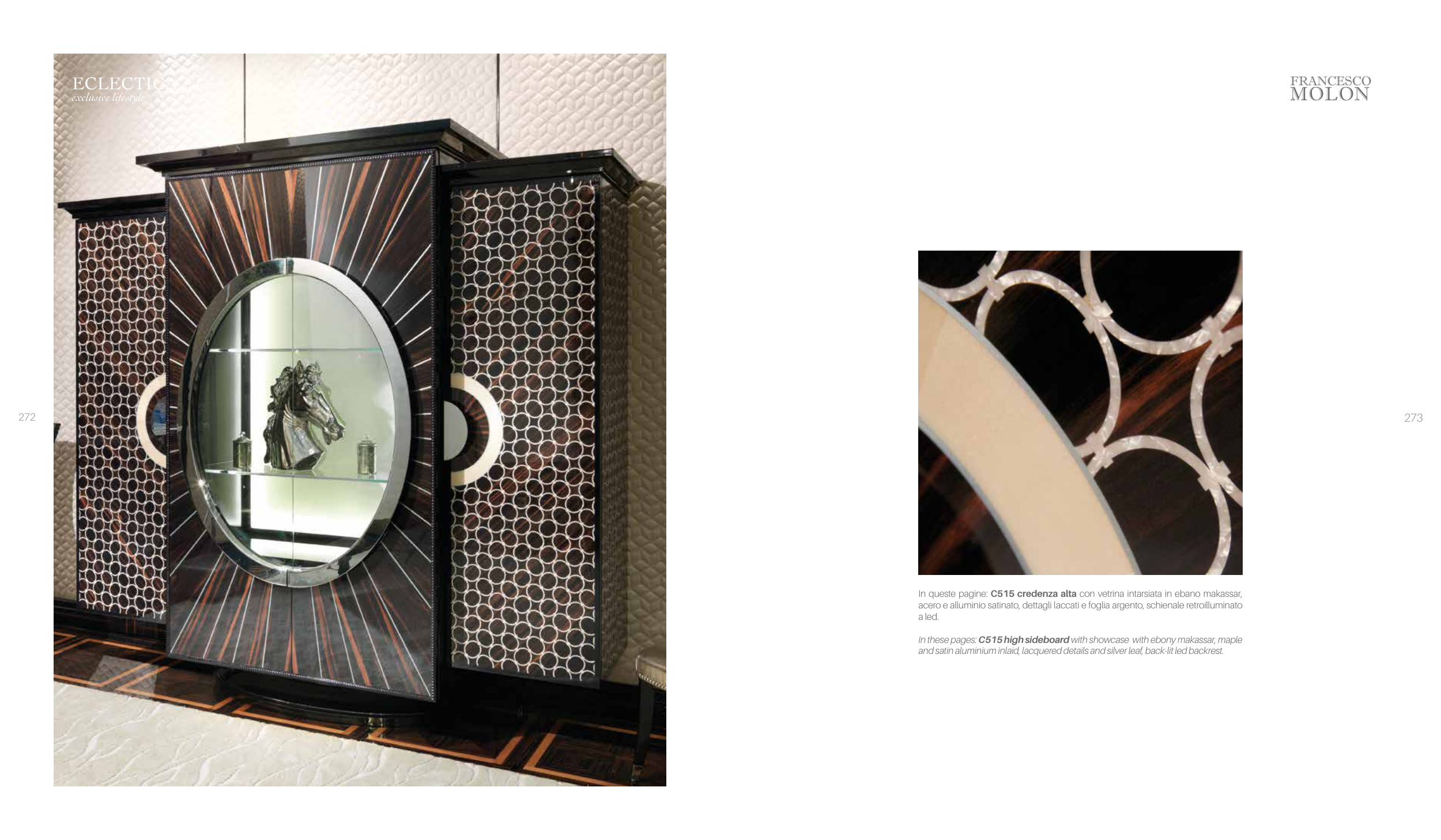 In these pages: C515 high sideboard with showcase with ebony makassar, maple