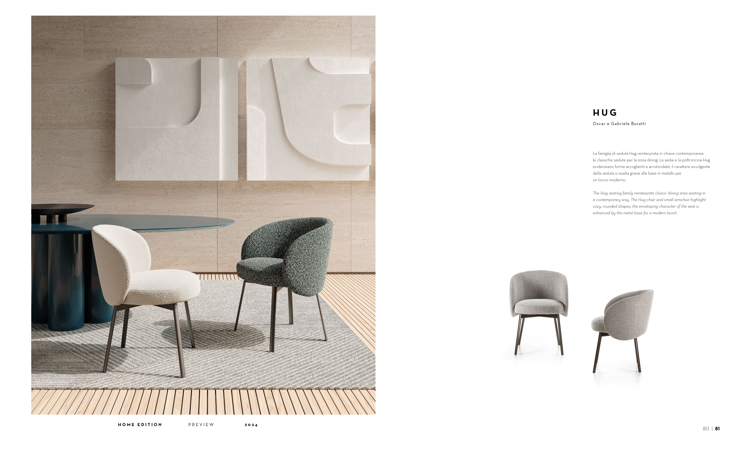 a contemporary way. The Hug chair and small armchair highlight