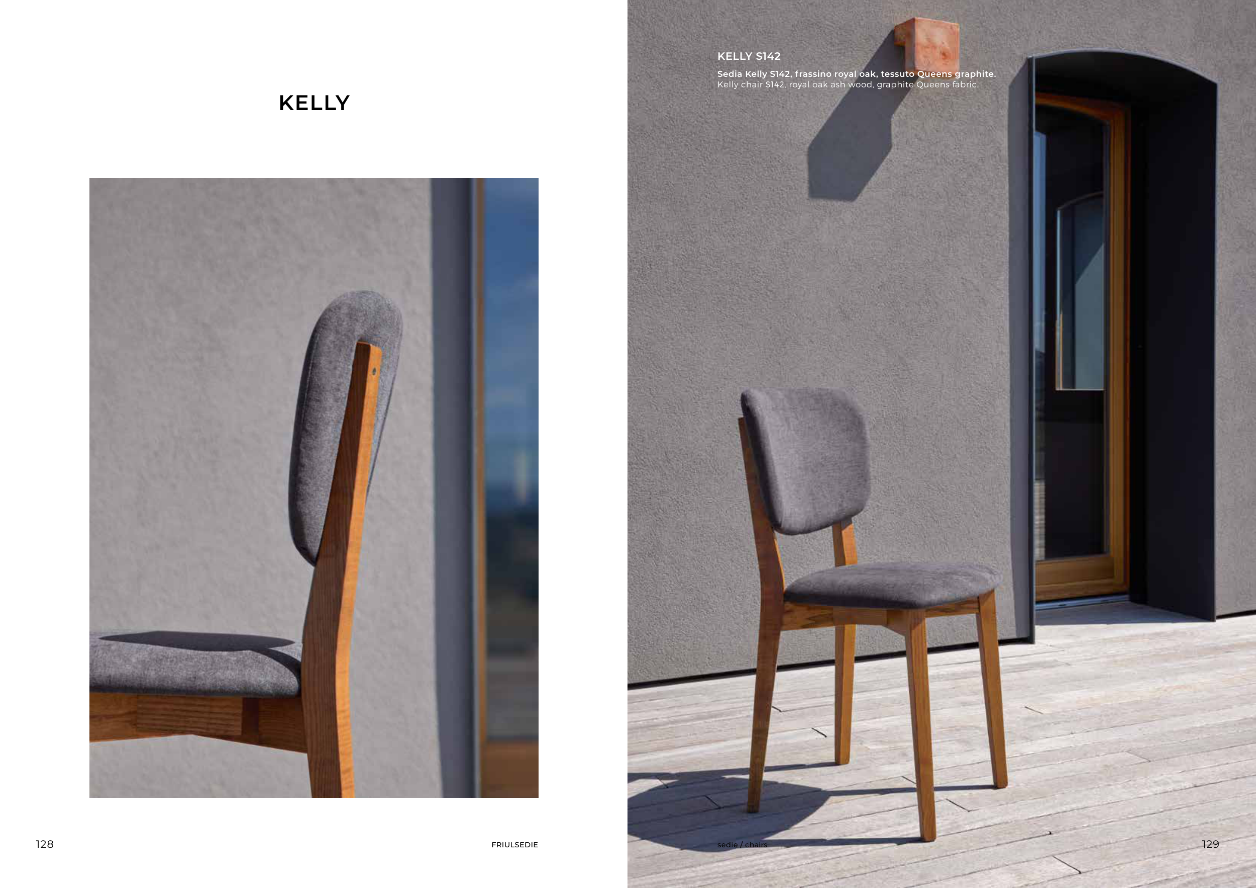 KELLY KELLY S142 Sedia Kelly S142, frassino royal oak, tessuto Queens graphite. Kelly chair S142, royal oak ash wood, graphite Queens fabric. 128 129 FRIULSEDIE sedie / chairs