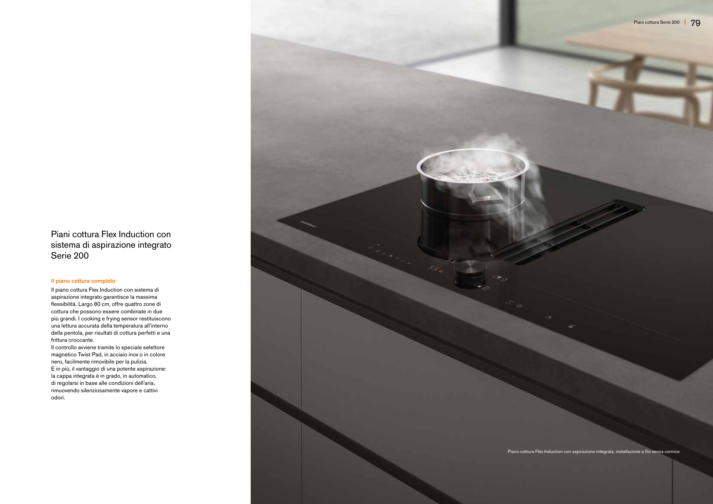 Piano cottura Flex Induction con aspirazione integrata, installazione a filo senza cornice
