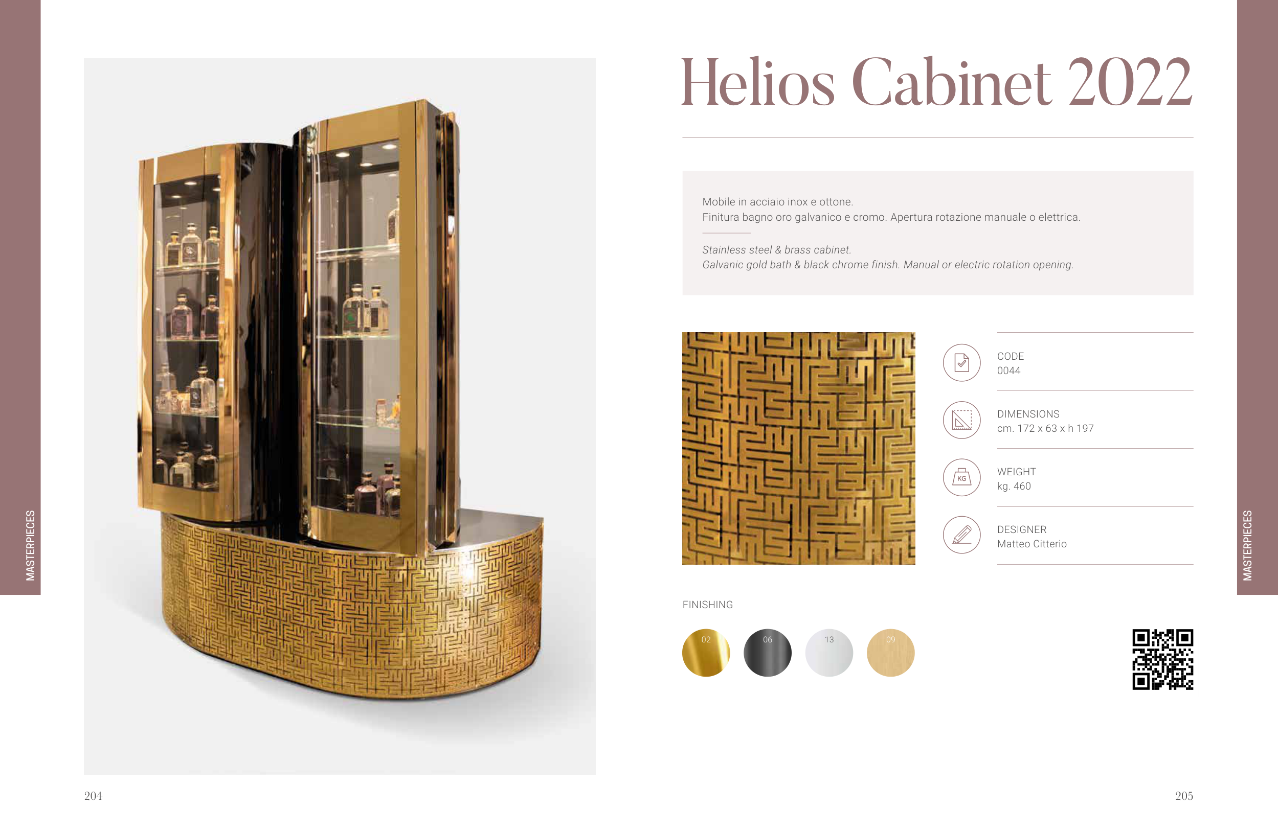 Galvanic gold bath & black chrome finish. Manual or electric rotation opening.