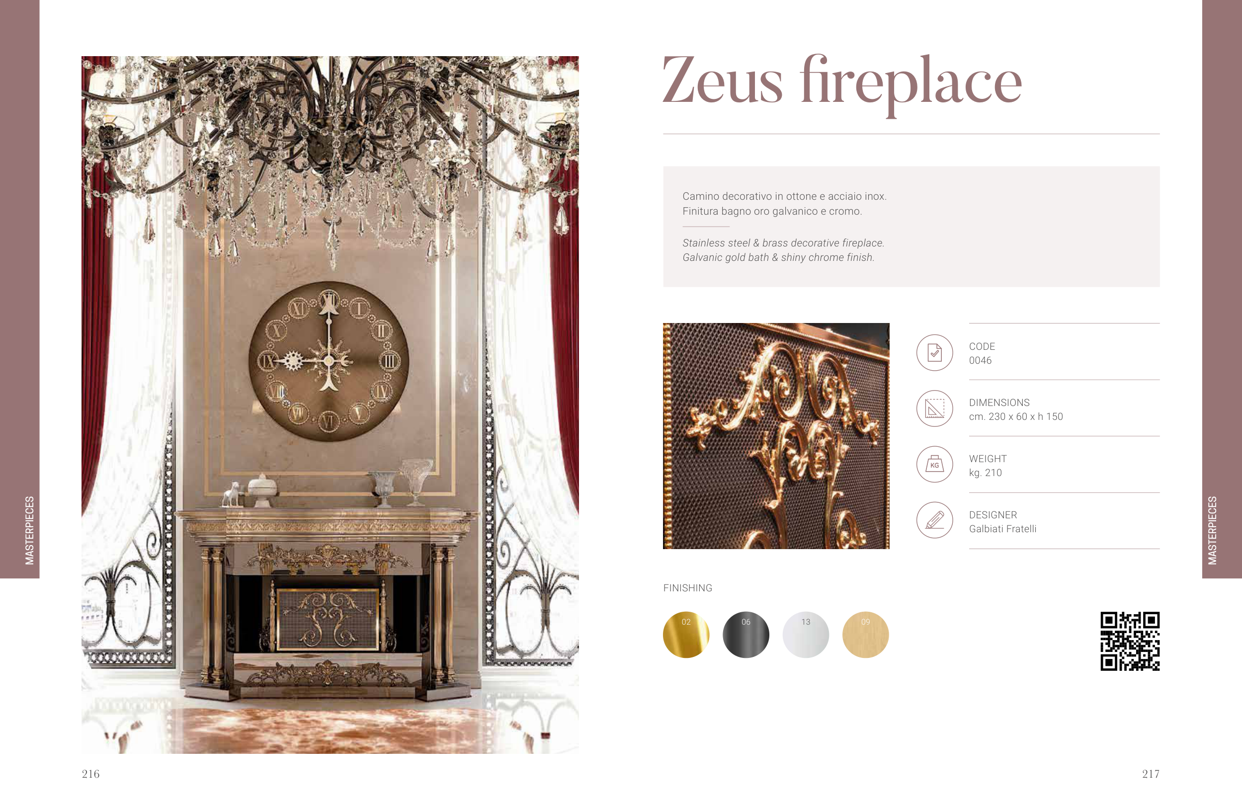 Camino decorativo in ottone e acciaio inox.